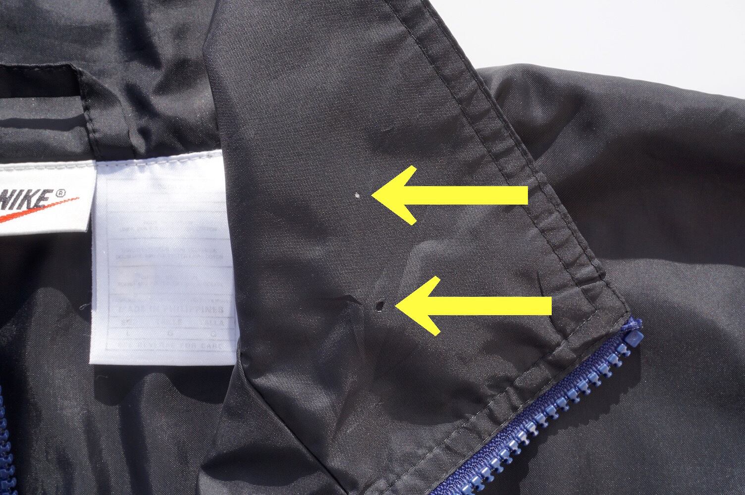 【コンディション】USED感・襟内側に小穴・右肩後ろに小キズ・右ポケット下ダメージを内側から強力接着テープでリペア・ライニングに薄汚れはありますが、その他大きなダメージはありません。