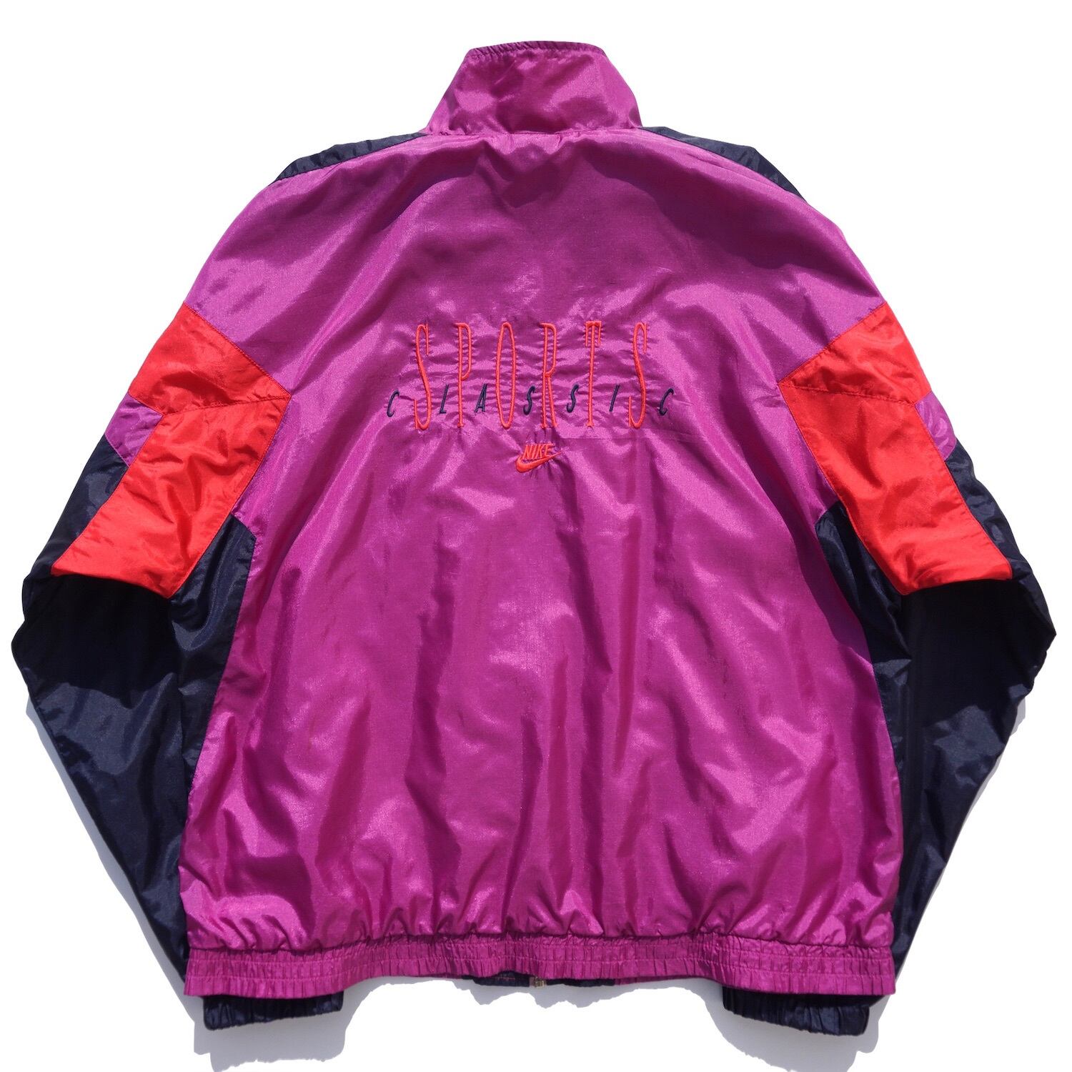 90’s初頭らしいカラーリング・身幅の広い球体シルエットな、ジップアップナイロントラックジャケット。