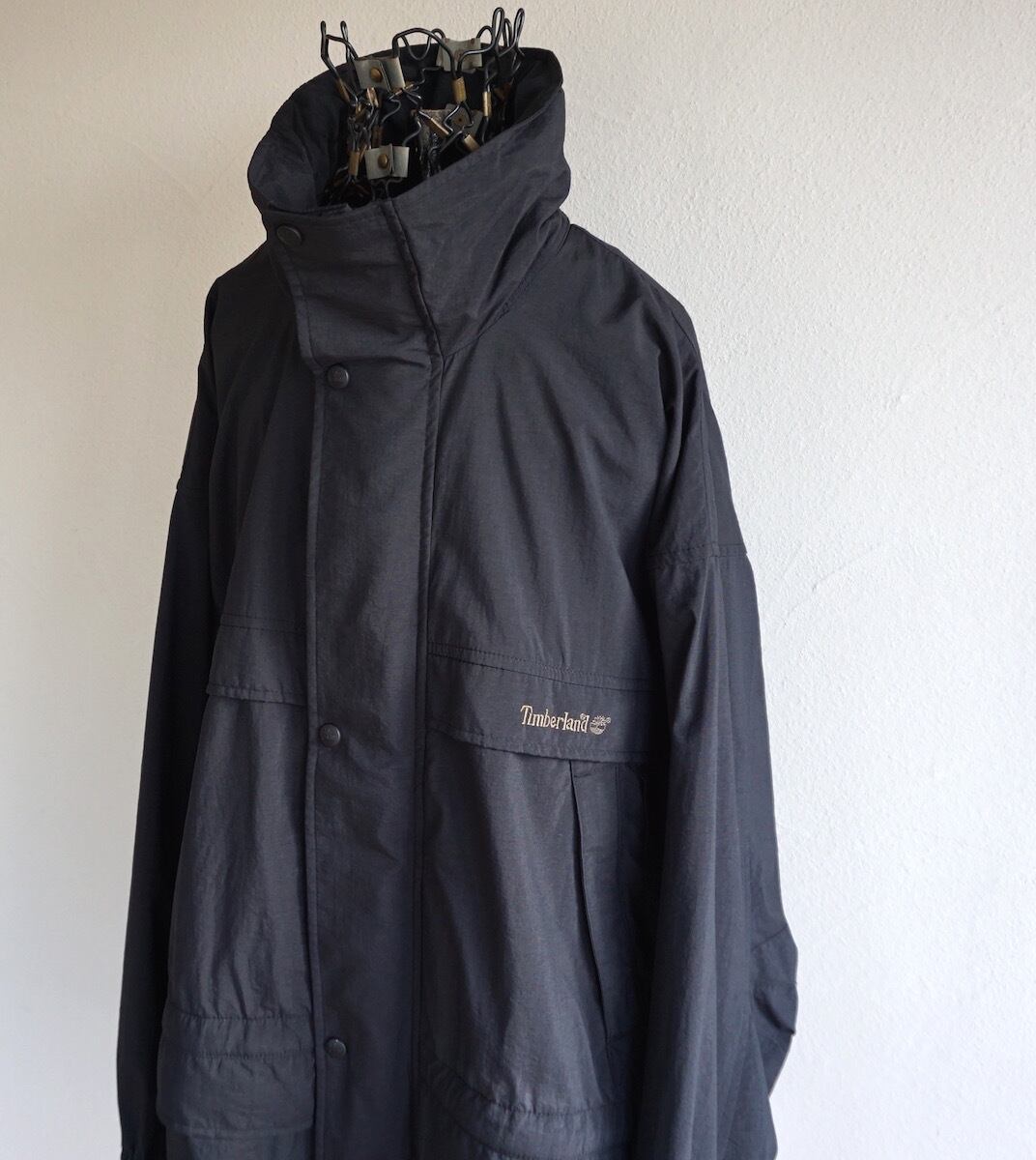 1990’s [Timberland] ナイロンマウンテンジャケット 収納式フード ブラック 表記(S) マウンテンパーカ ティンバーランド ヴィンテージ