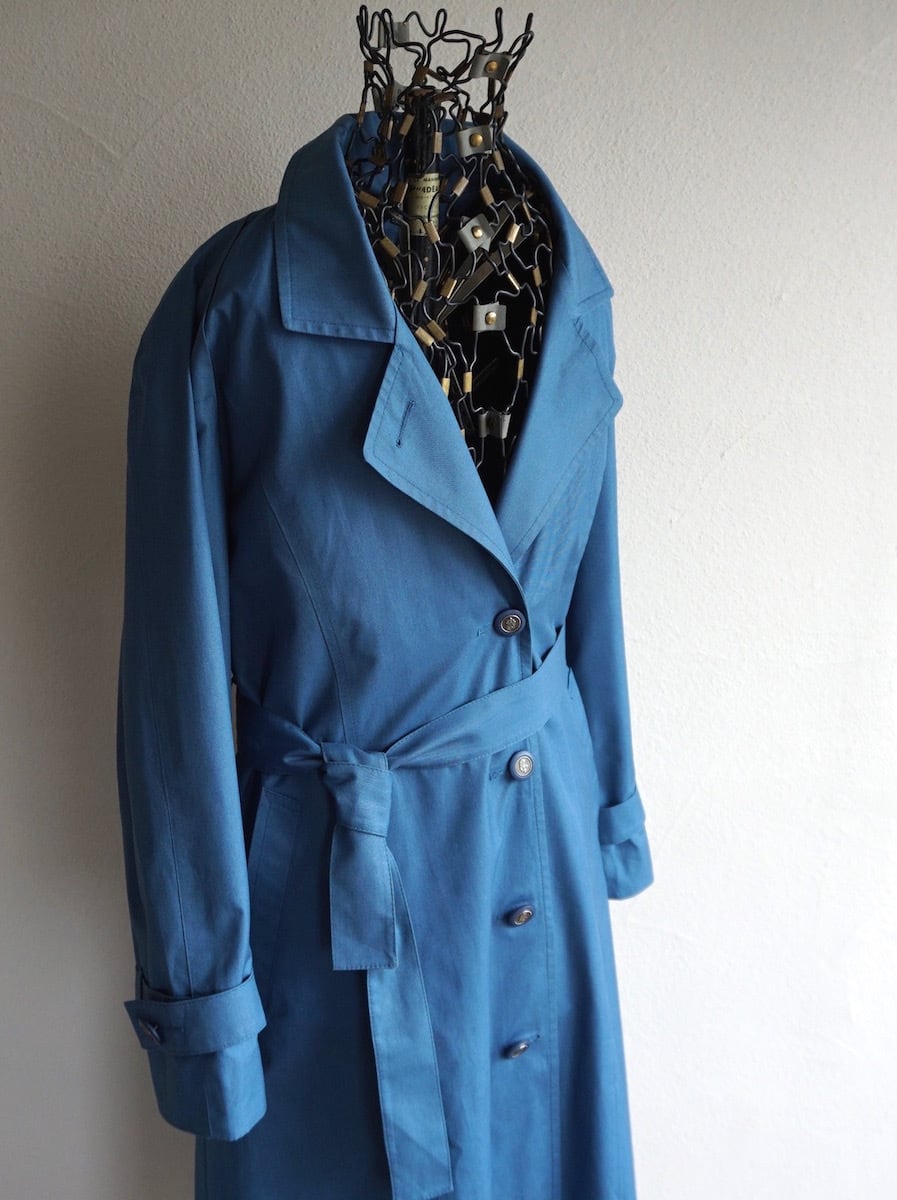 1980’s〜 USA製 [LONDON FOG] シングルトレンチコート サックスブルー 実寸(women's S〜M程度) ロンドンフォグ ヴィンテージ