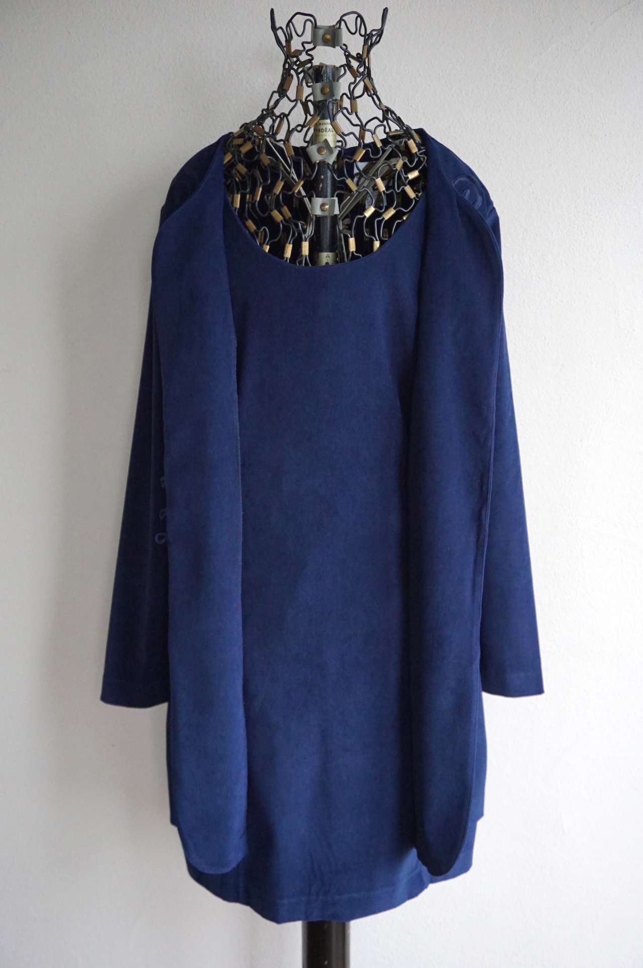 ●平置き実寸:肩幅41cm、身幅50.5cm、ウエスト47cm(×2)、ヒップ53.5cm(×2)、袖丈58cm、着丈85cm ※多少の誤差はご容赦下さい。