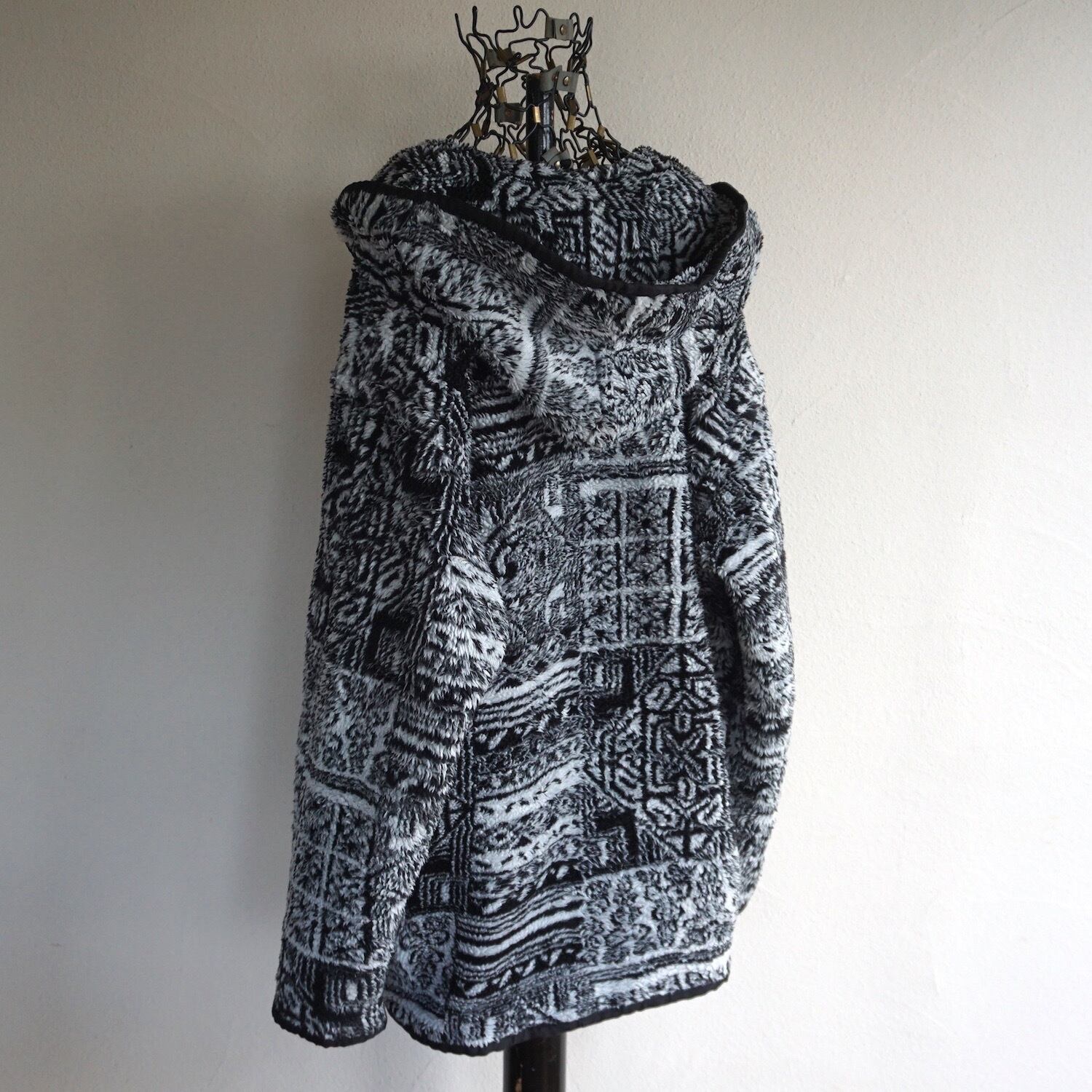1980’s〜90’s CANADA製 [SEQUENCE] ボアフリース フーデッド ショートコート ホワイト×ブラック 実寸(women's L〜XL程度) 幾何学柄 ボア ヴィンテージ