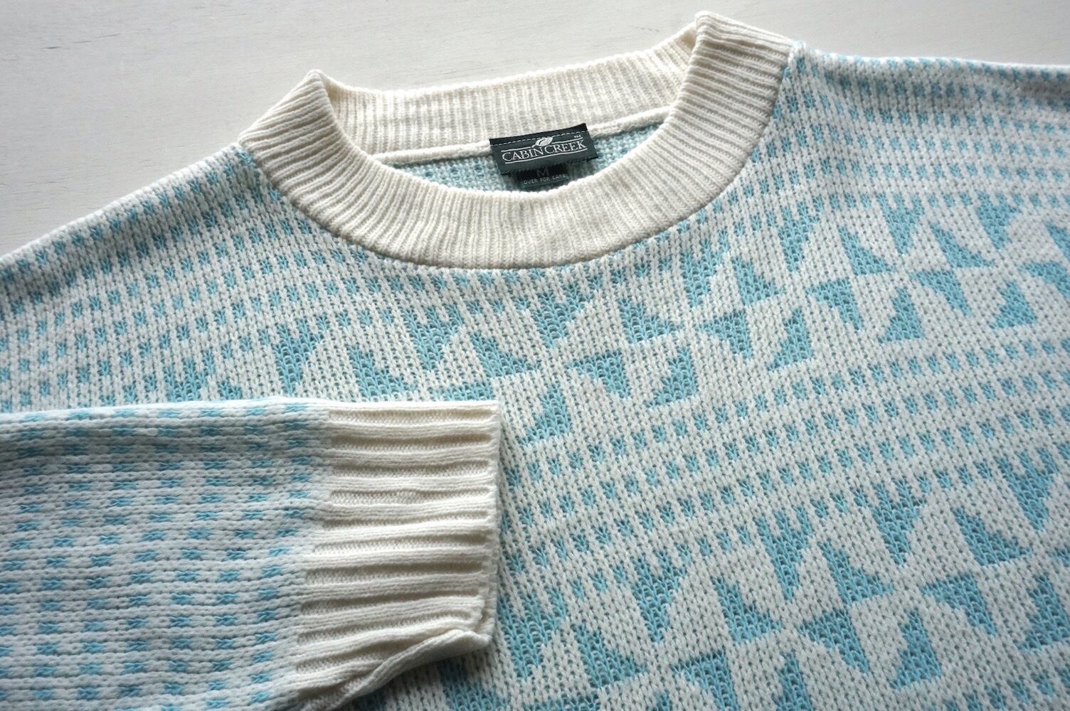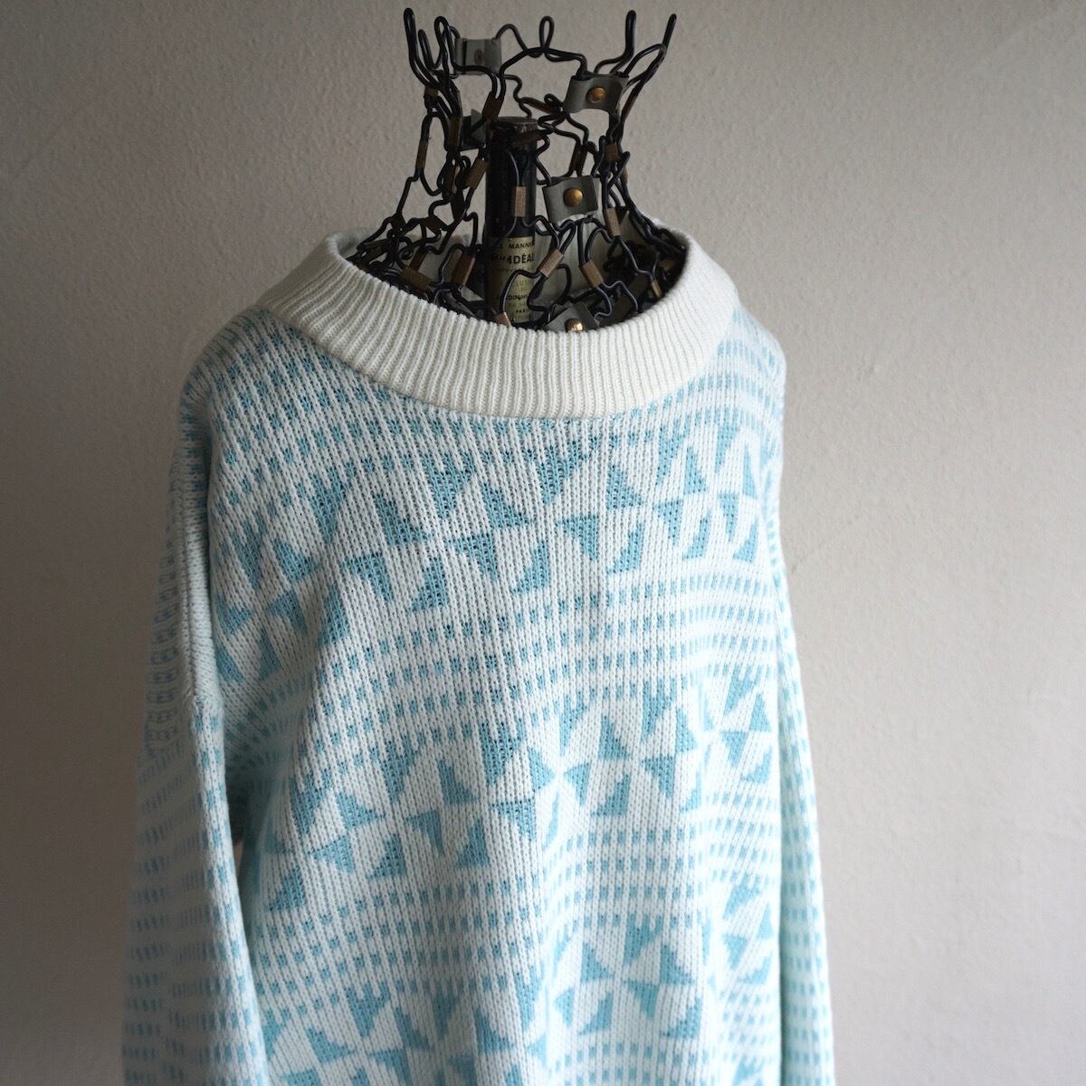 1990’s USA製 [CABIN CREEK] デジタルスノー柄 アクリルニットセーター ホワイト×ライトブルー 表記(women's M) 雪柄 ヴィンテージ