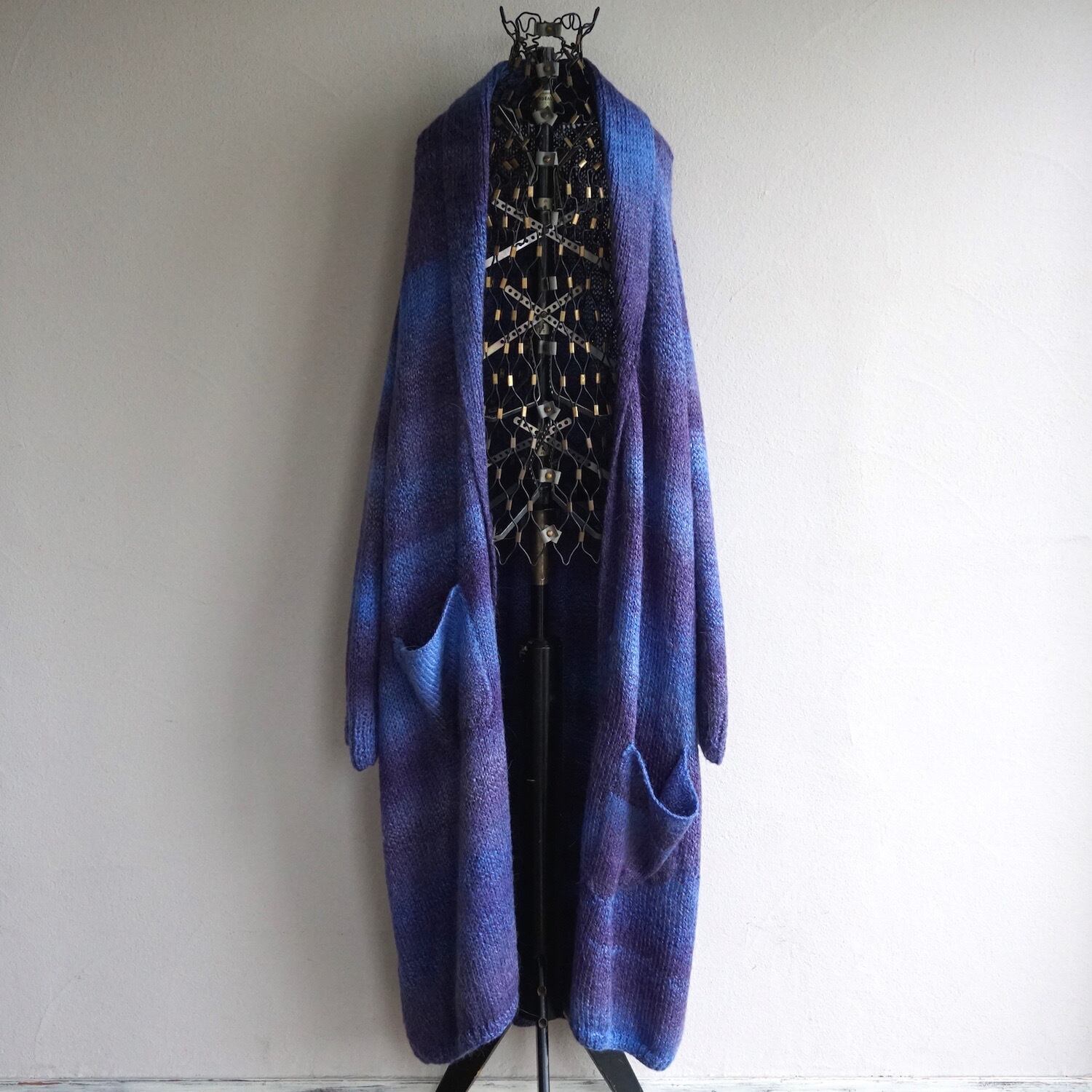1990’s〜 ショールカラー モヘアミックス ロングニットガウン パープル×ブルー グラデーション 実寸(women's XL〜程度)