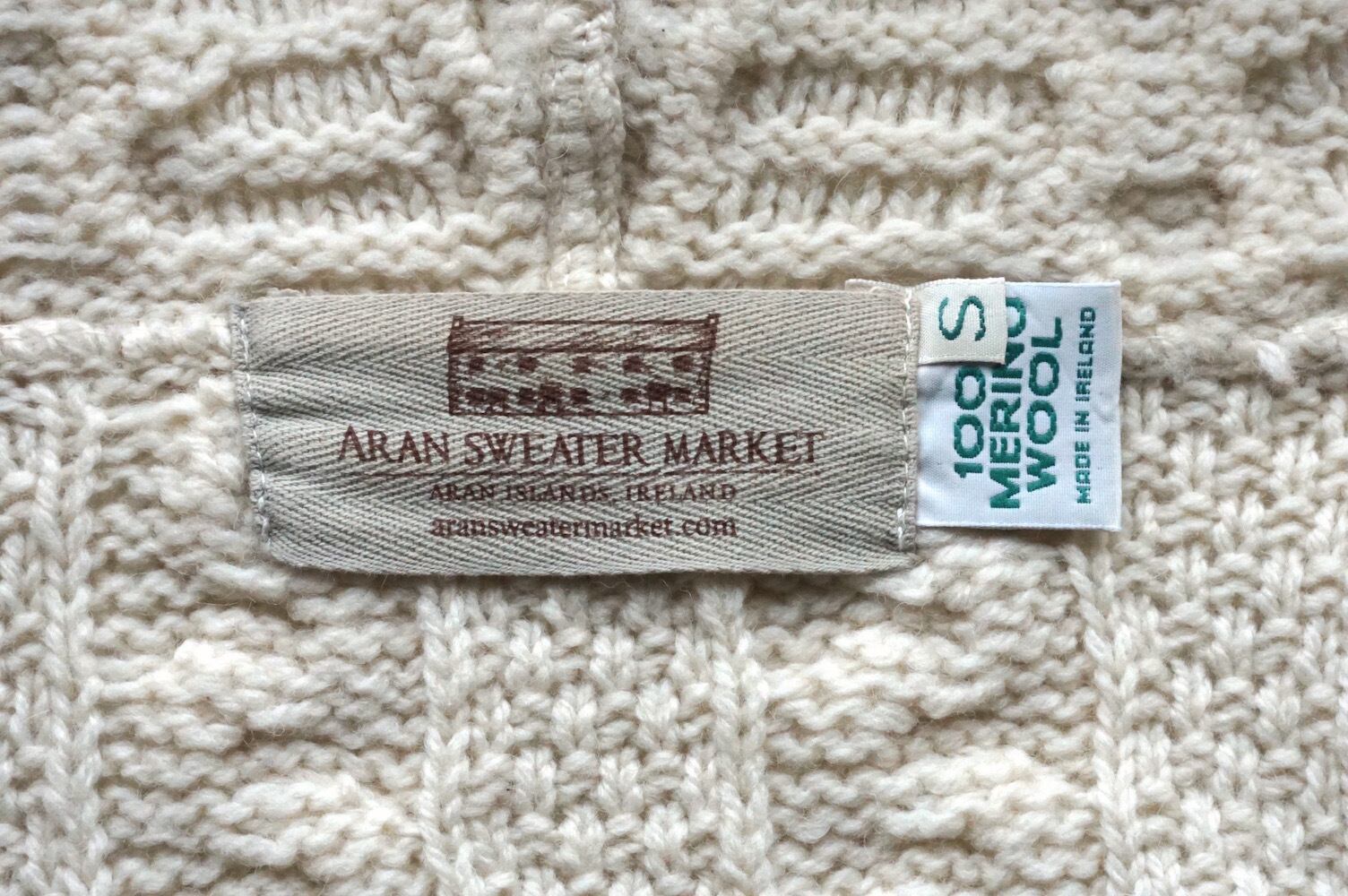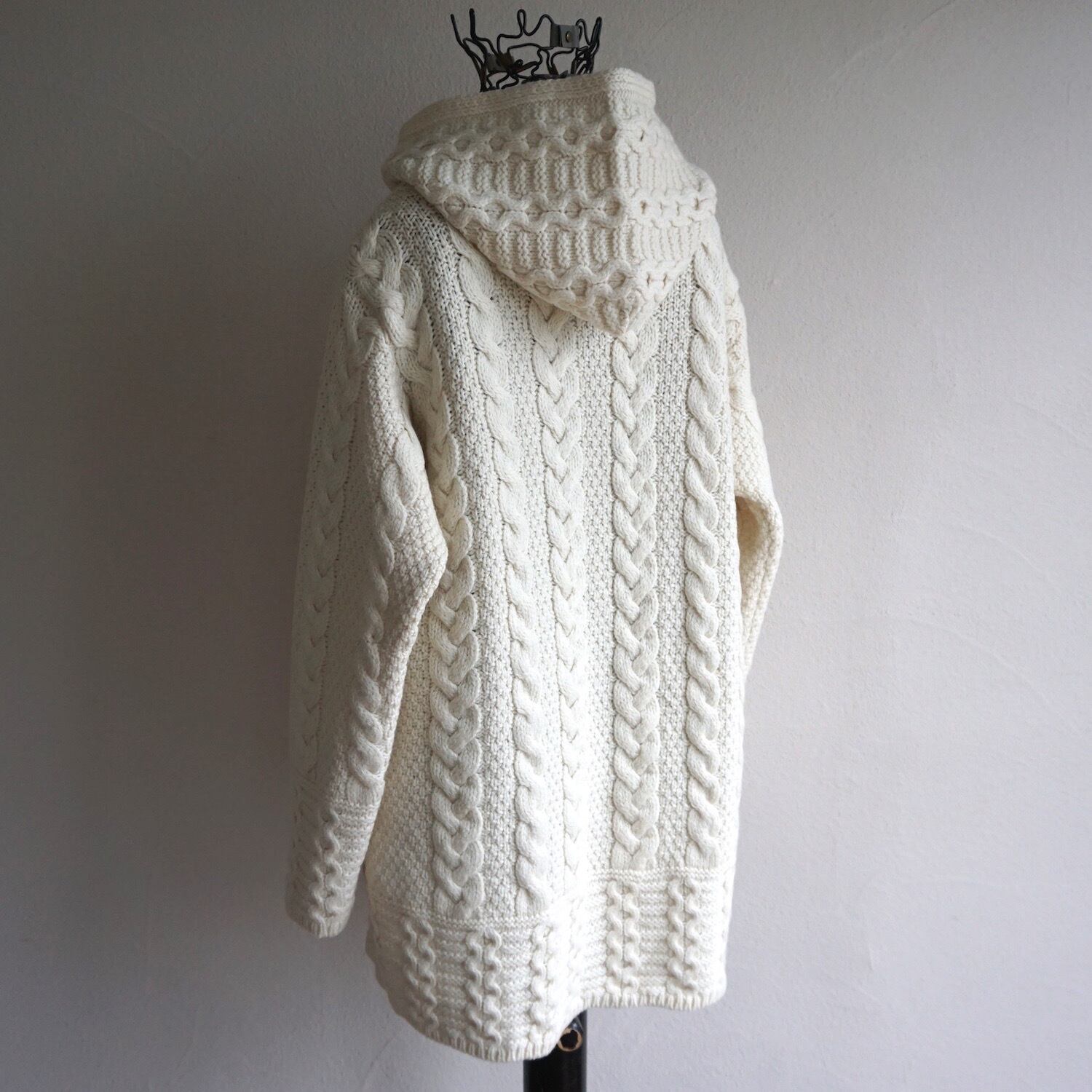 2000’s IRELAND製 [ARAN SWEATER MARKET] フィッシャーマンロングニットパーカ ハーフコート丈 アイボリー 表記(women's S) アラン ケーブル ロングカーディガン