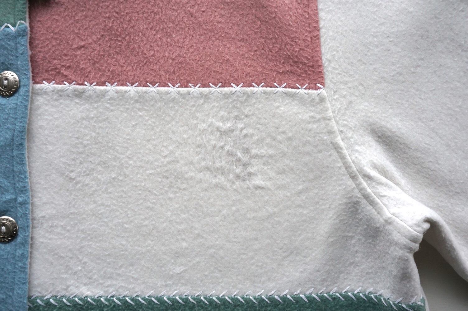 ペールトーンのマルチカラー配色が可愛い、フリースジャケット。
