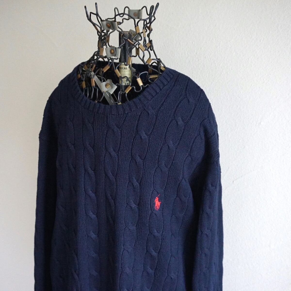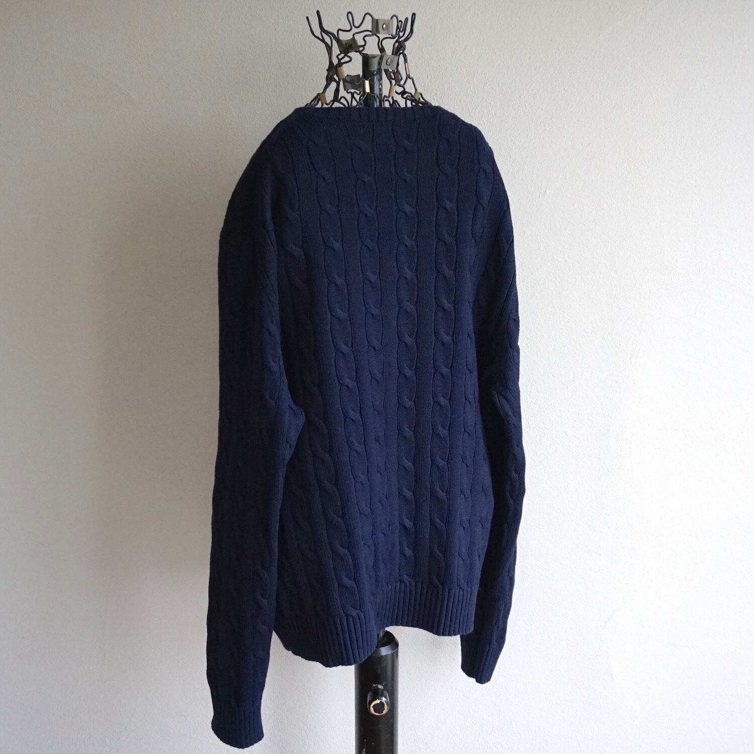 [Ralph Lauren] 100%コットン ケーブルニットセーター クルーネック ネイビー 表記(XL) ラルフローレン