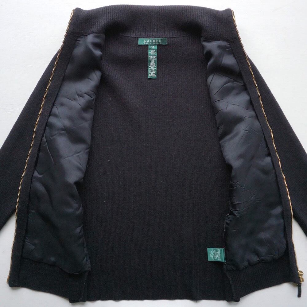1990’s〜 [LAUREN] シルクスカーフキルティング ジップアップリブニットセーター ブラック 表記(women's XS) Ralph Lauren ラルフローレン | MAGNOLIA WEBSTORE