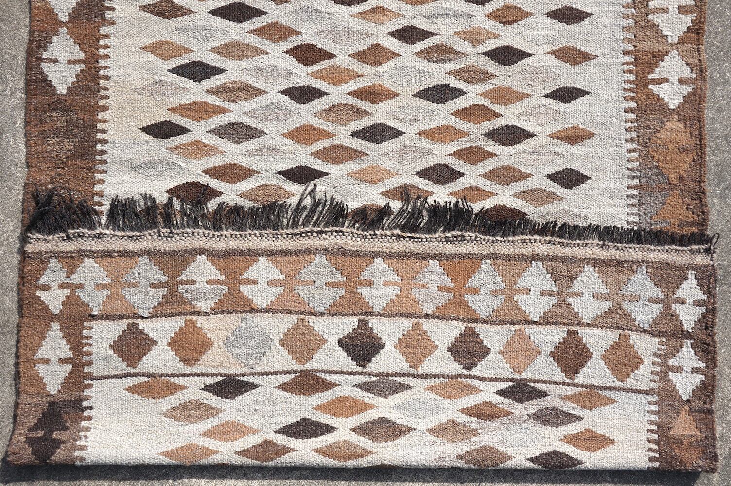 ナチュラルなブラウン系のアースカラーでまとまった、アフガンキリム。