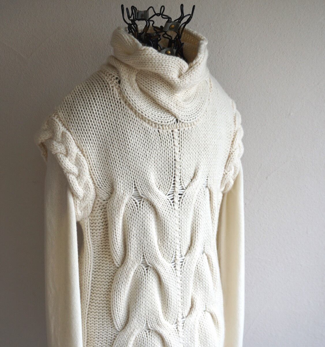[MADELEINE] 3Dローゲージボディ×ハイゲージアーム ドッキングデザイン ハイネックニットセーター アイボリー 実寸(women's M程度)