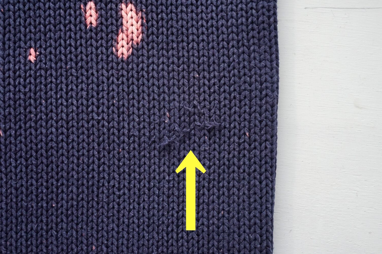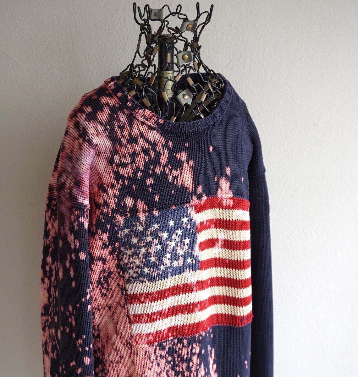 荒々しくブリーチが施された、星条旗柄コットンニットセーター。
