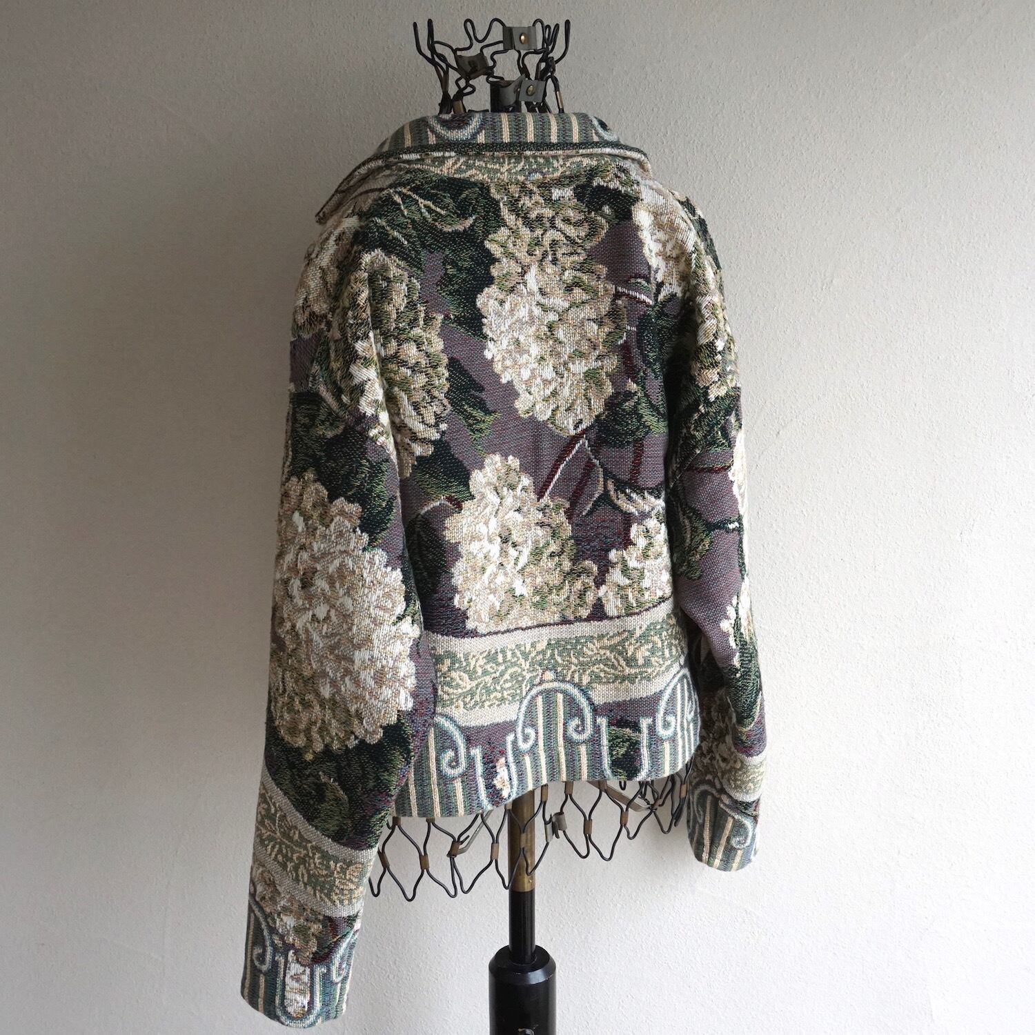 エレガントなダマスク調フローラル柄の「タペストリー織り」(ゴブラン織り)ショート丈ブレザージャケット。