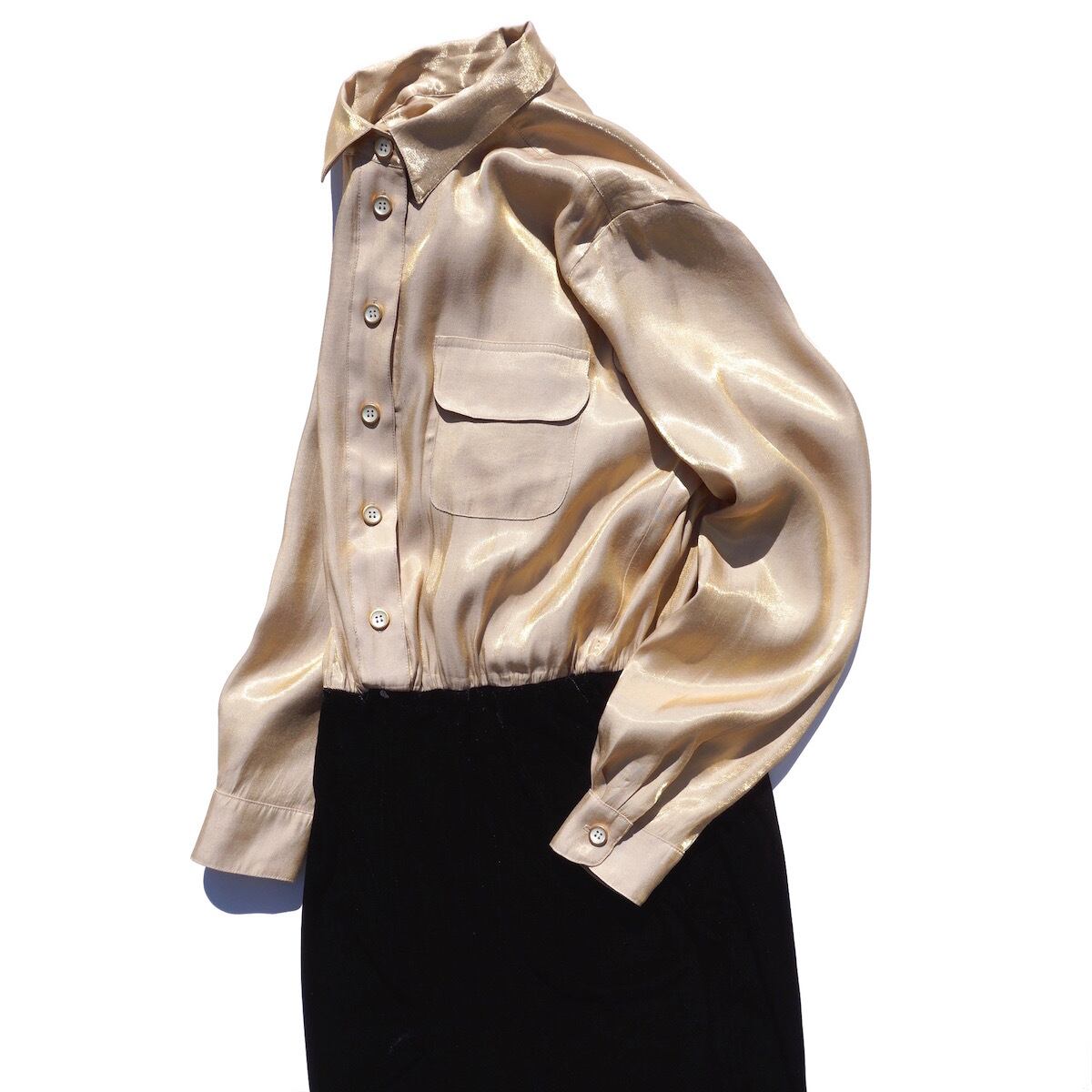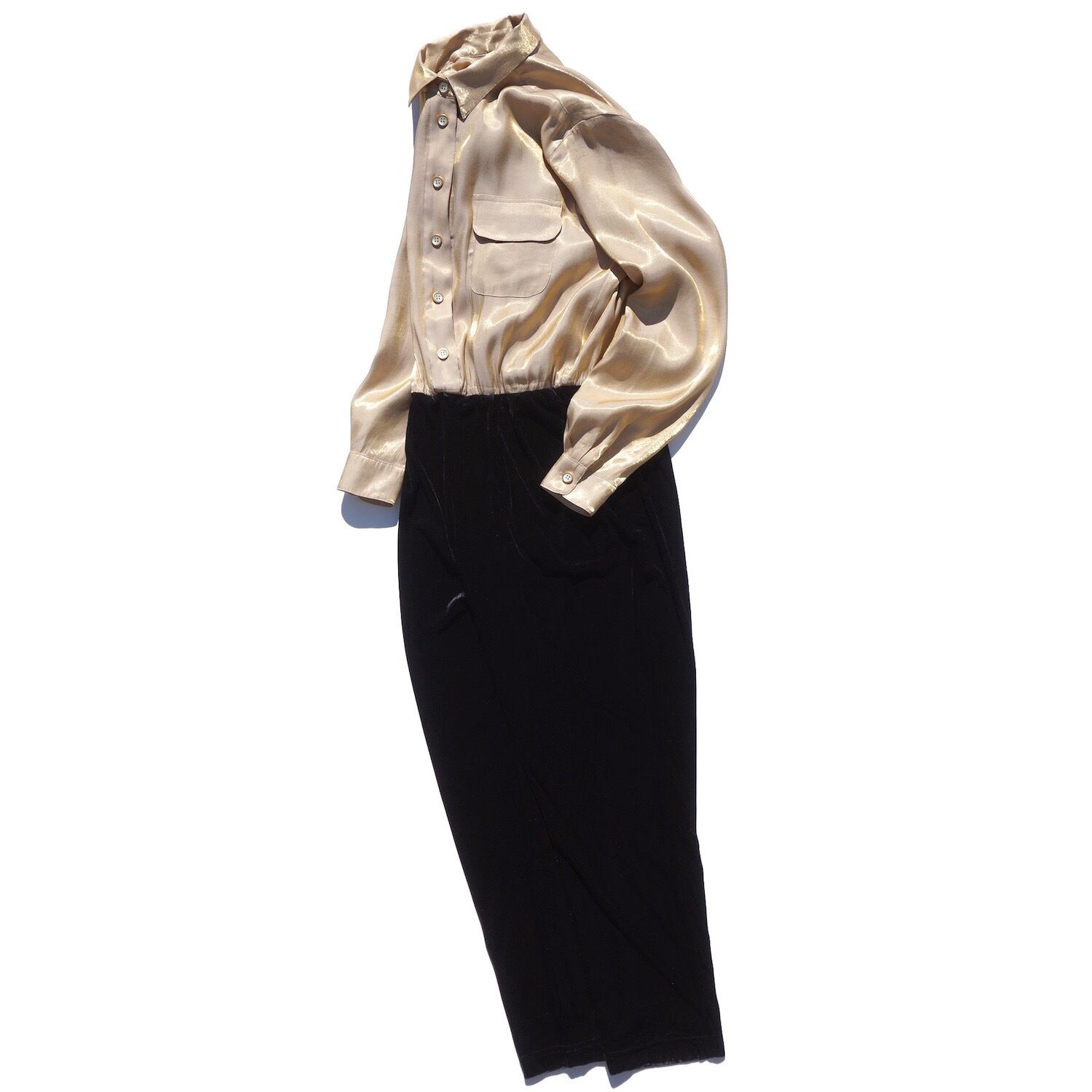 1990’s USA製 [CACHE] グリッターブラウス×ベロアイージーパンツ ジャンプスーツ シャンパンゴールド×ブラック 実寸(women's M〜L程度) オールインワン つなぎ ヴィンテージ | MAGNOLIA WEBSTORE