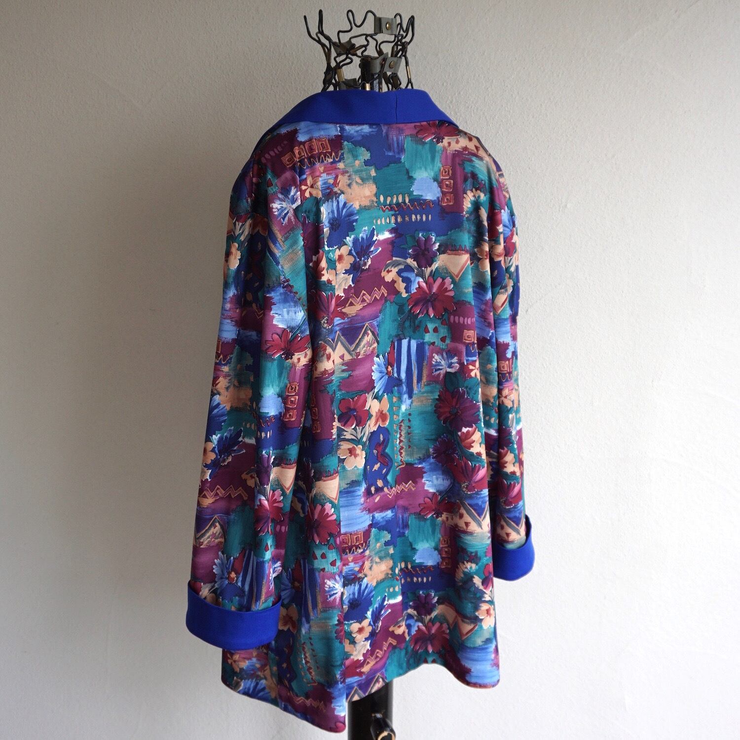 ユーロ調の水彩画柄とオリエンタルなデザインのmix感が可愛い、ショート丈ポリエステルガウン。