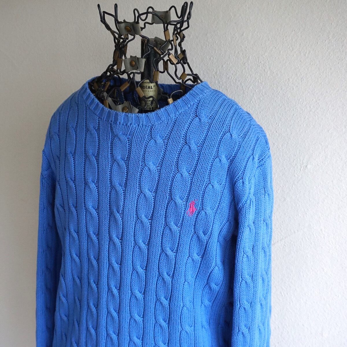[Ralph Lauren] 100%コットン ケーブルニットセーター クルーネック サルビアブルー 表記(women's S) ラルフローレン