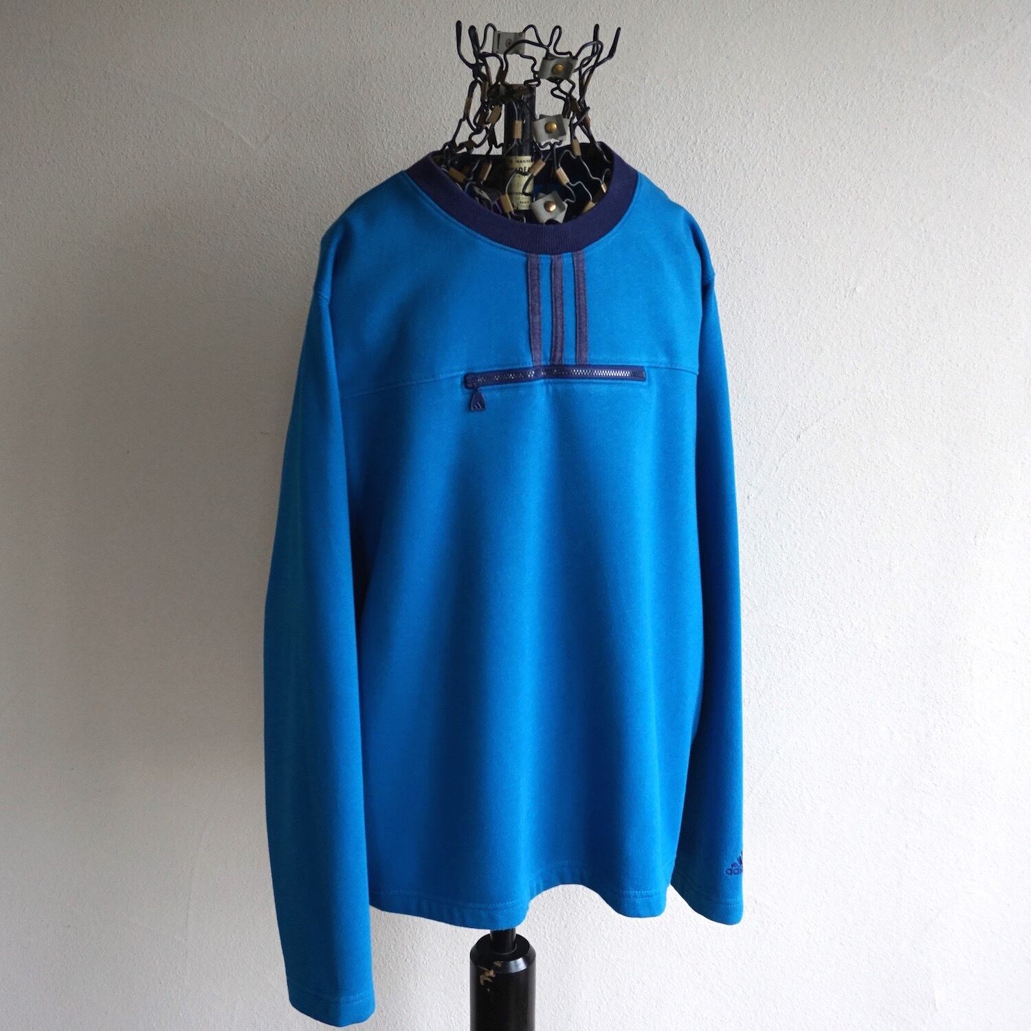 2000’s [adidas] チェストポケット スポーツスウェット ブルー 実寸(women's M程度) アディダス