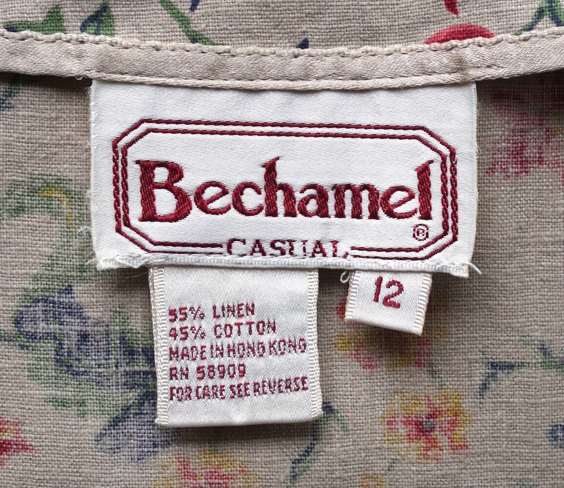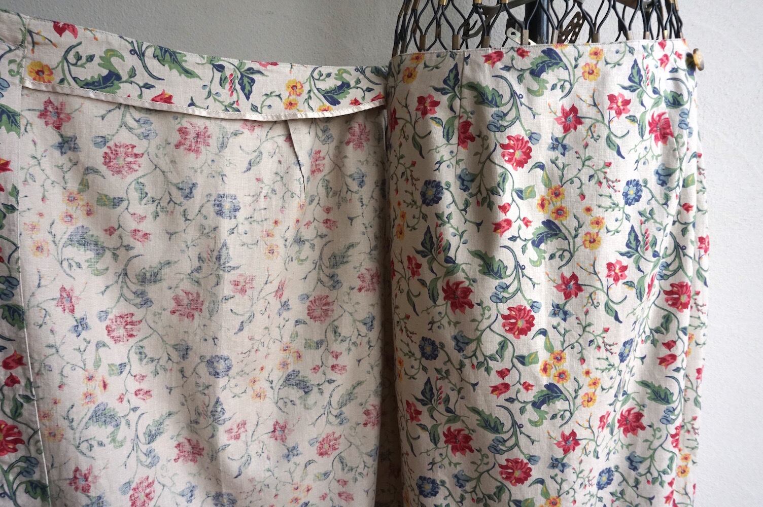 1990’s [Bechamel] フローラル柄 リネン×コットン ロングラップスカート ベージュ 実寸(women's L程度) 花柄 ヴィンテージ