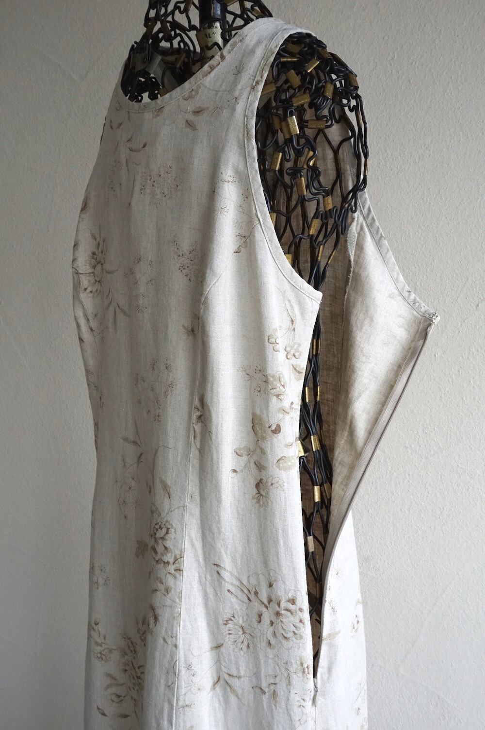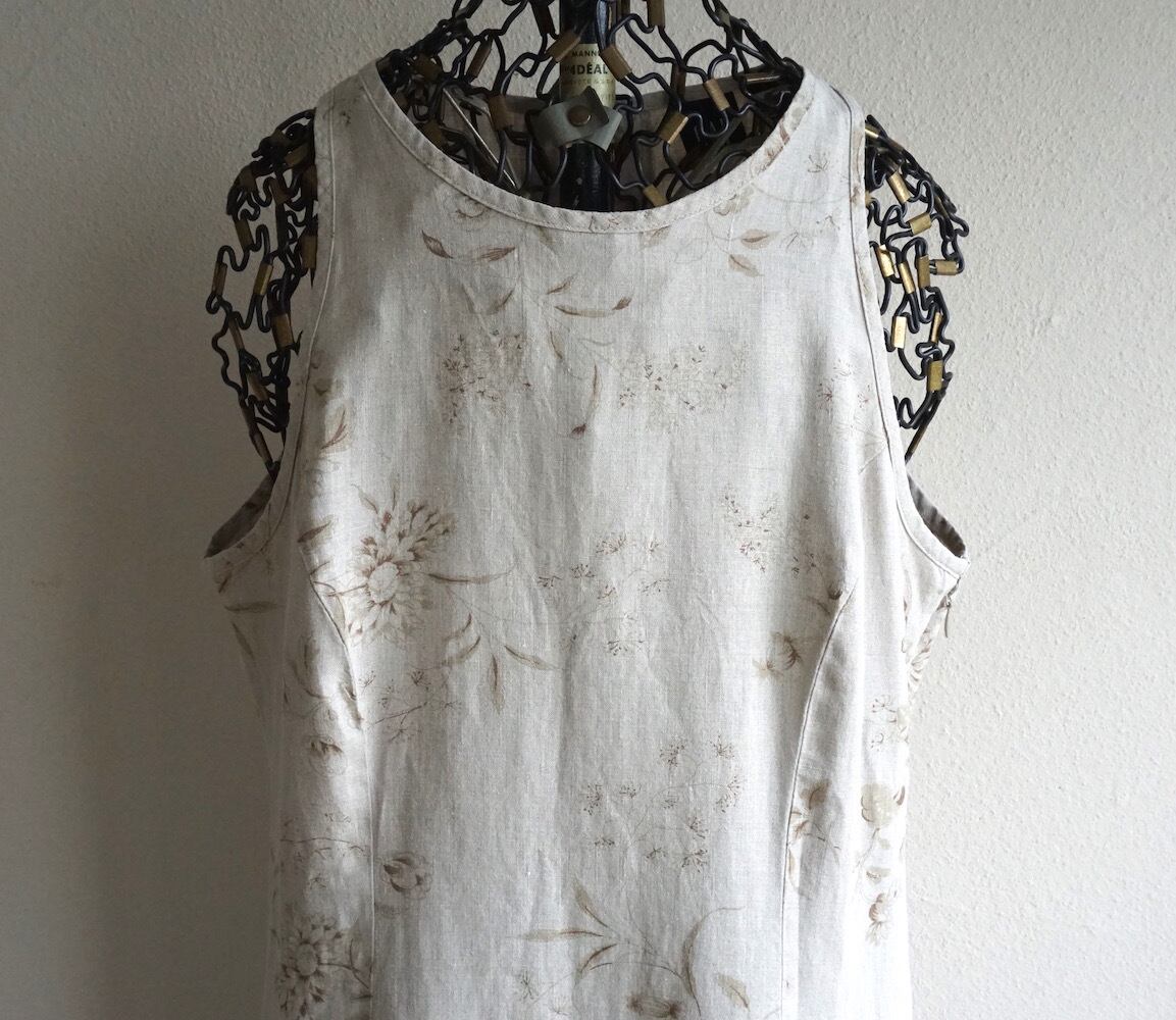 1990’s〜2000’s [GAP] 100%リネン スリーブレスサマードレス マキシ丈 Aライン ベージュ×フローラル柄 実寸(women's M程度) 花柄 オールドギャップ