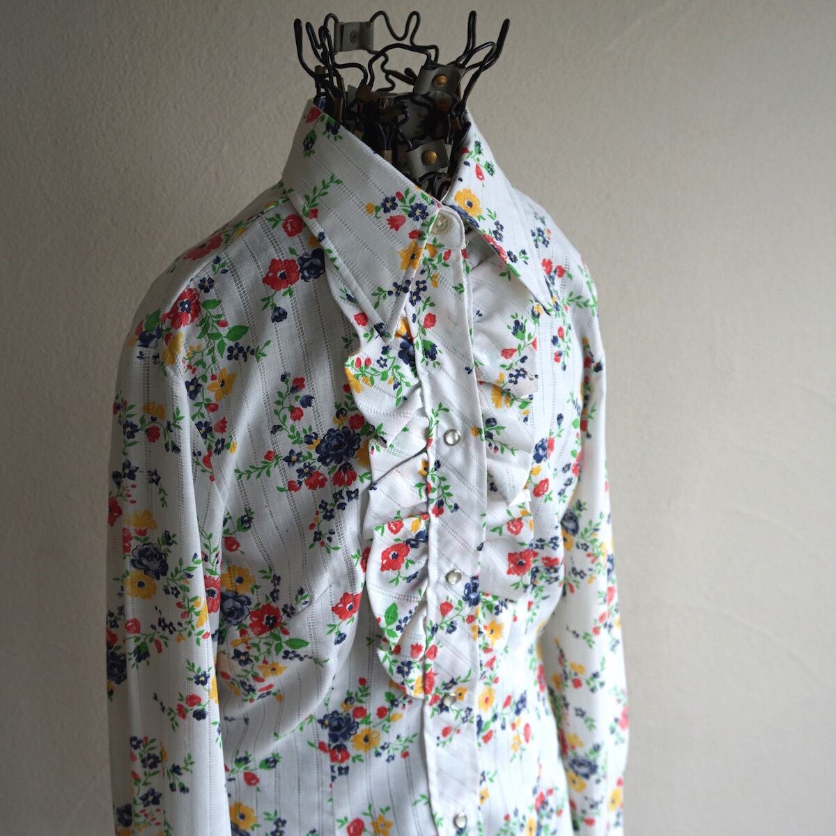 フリルデザインがレア&可愛い、フローラル柄ウエスタンシャツ。