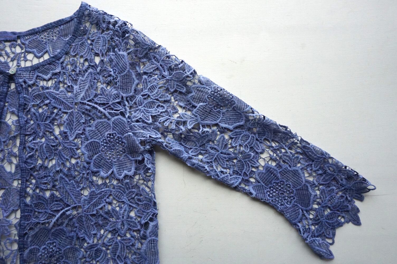 ITALY製 [NEW COLLECTION] レースカーディガン サルビアブルー 実寸(women's M程度) シースルー