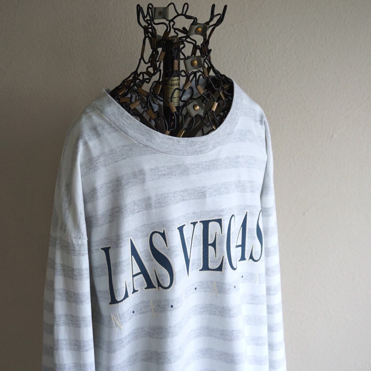1990’s USA製 [TENNESSEE RIVER] "LAS VEGAS" スーベニアプリント ロングスリーブTシャツ ボーダー 杢グレー×ホワイト 表記(XL) ロンT ラスベガス ヴィンテージ | MAGNOLIA WEBSTORE