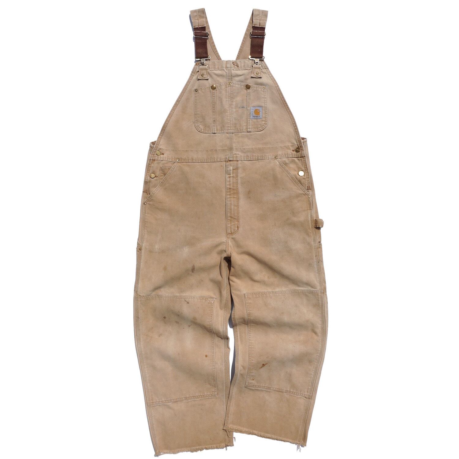 1990’s USA製 [carhartt] ダックキャンバス オーバーオール ダブルニー ブラウン 表記(40) カーハート ヴィンテージ