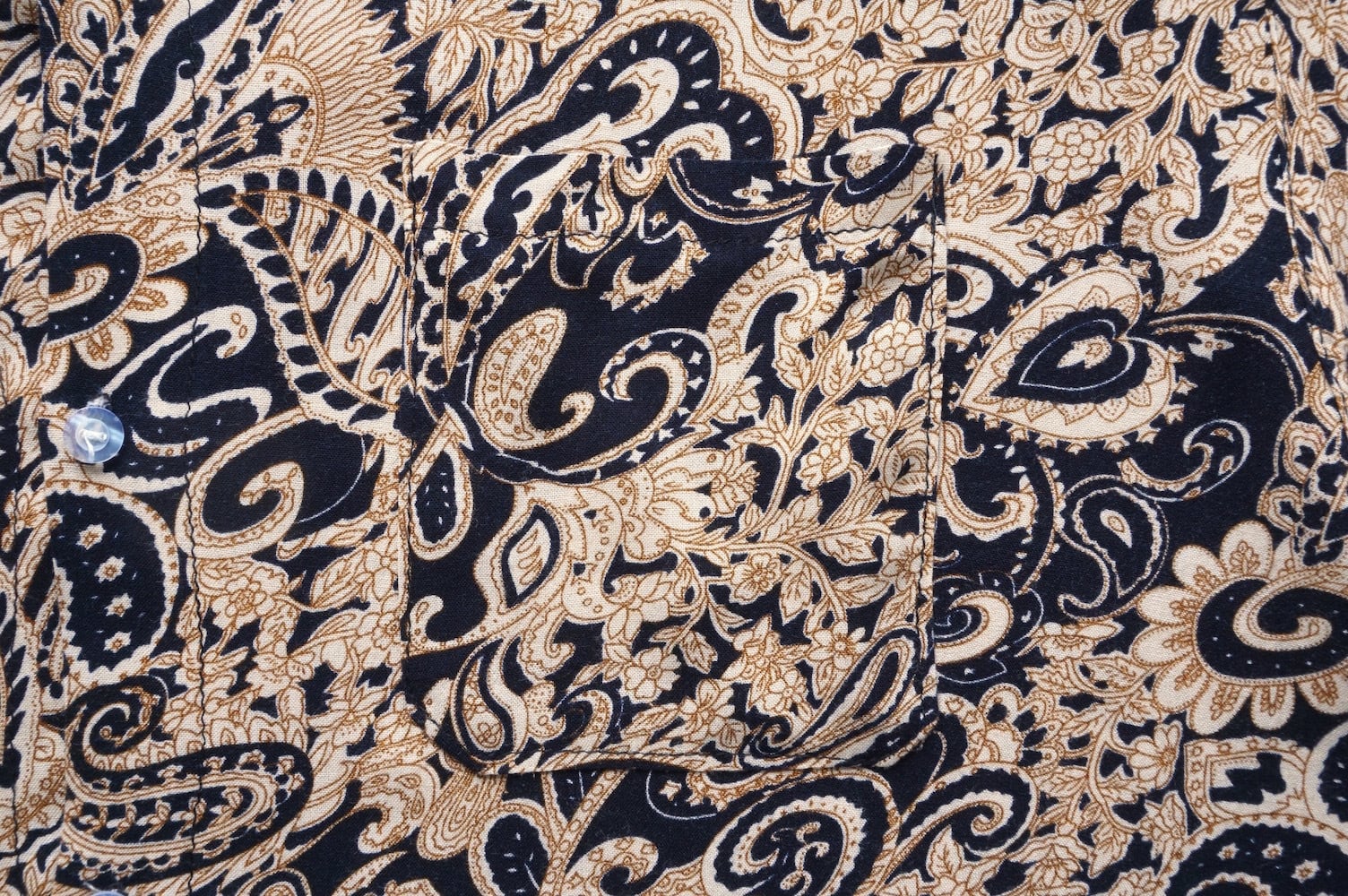 1980’s〜 ペイズリー柄 S/S レーヨンシャツ ダークネイビー×ベージュ系 実寸(M程度) ユーロ ヨーロッパ ヴィンテージ