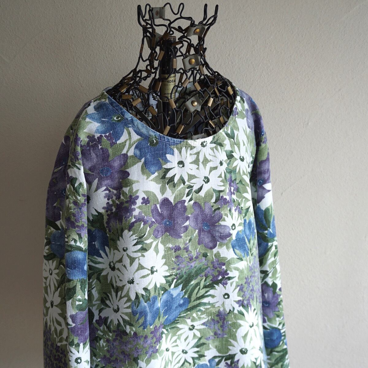 1990’s USA製 [Hot Cotton] 100%リネン フローラル柄 クルーネックカットソー 表記(women's L) 花柄