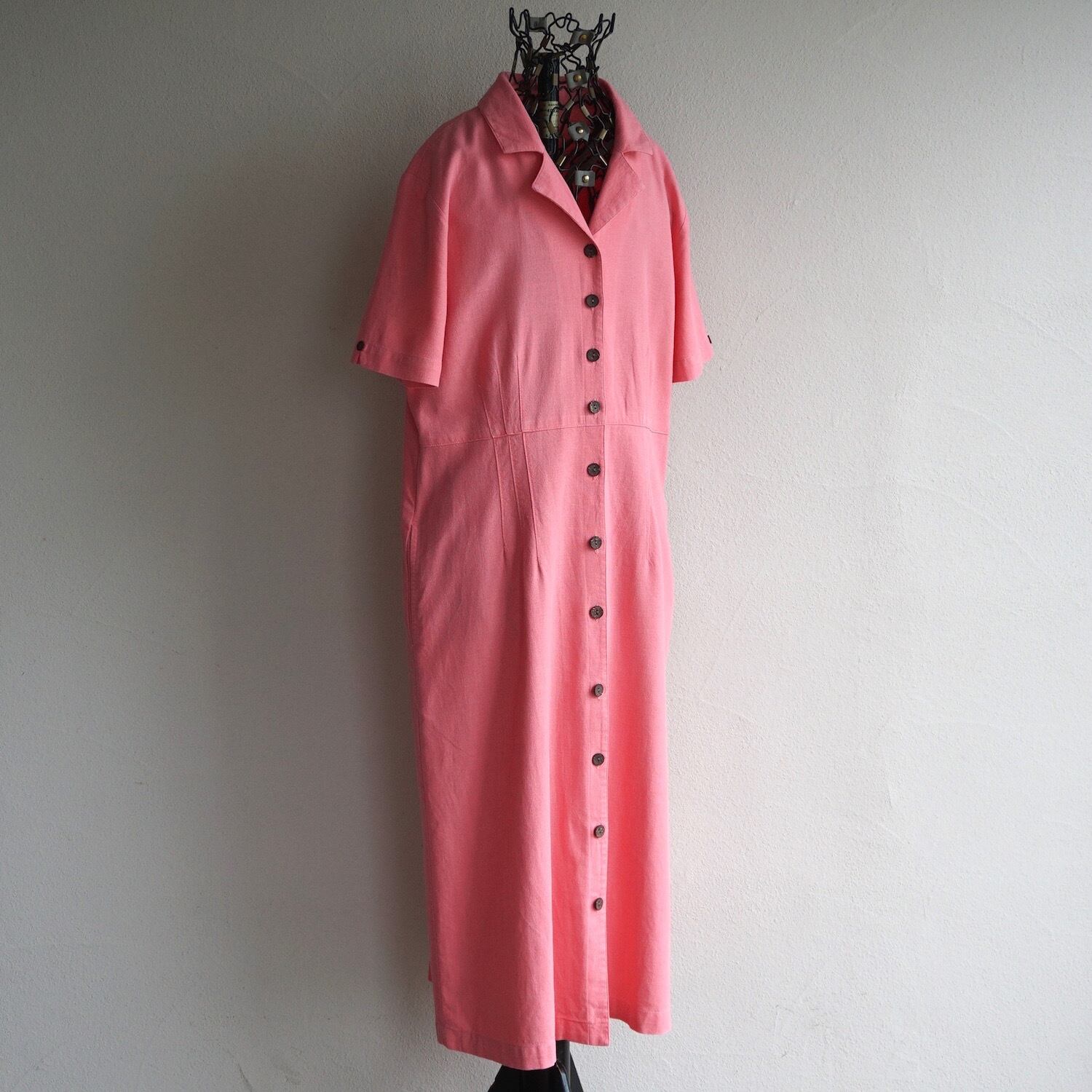 1990’s〜2000’s [THE TOG SHOP] リネン×レーヨン S/S ロングドレス チャイニーズピンク 実寸(women's M程度) ワンピース