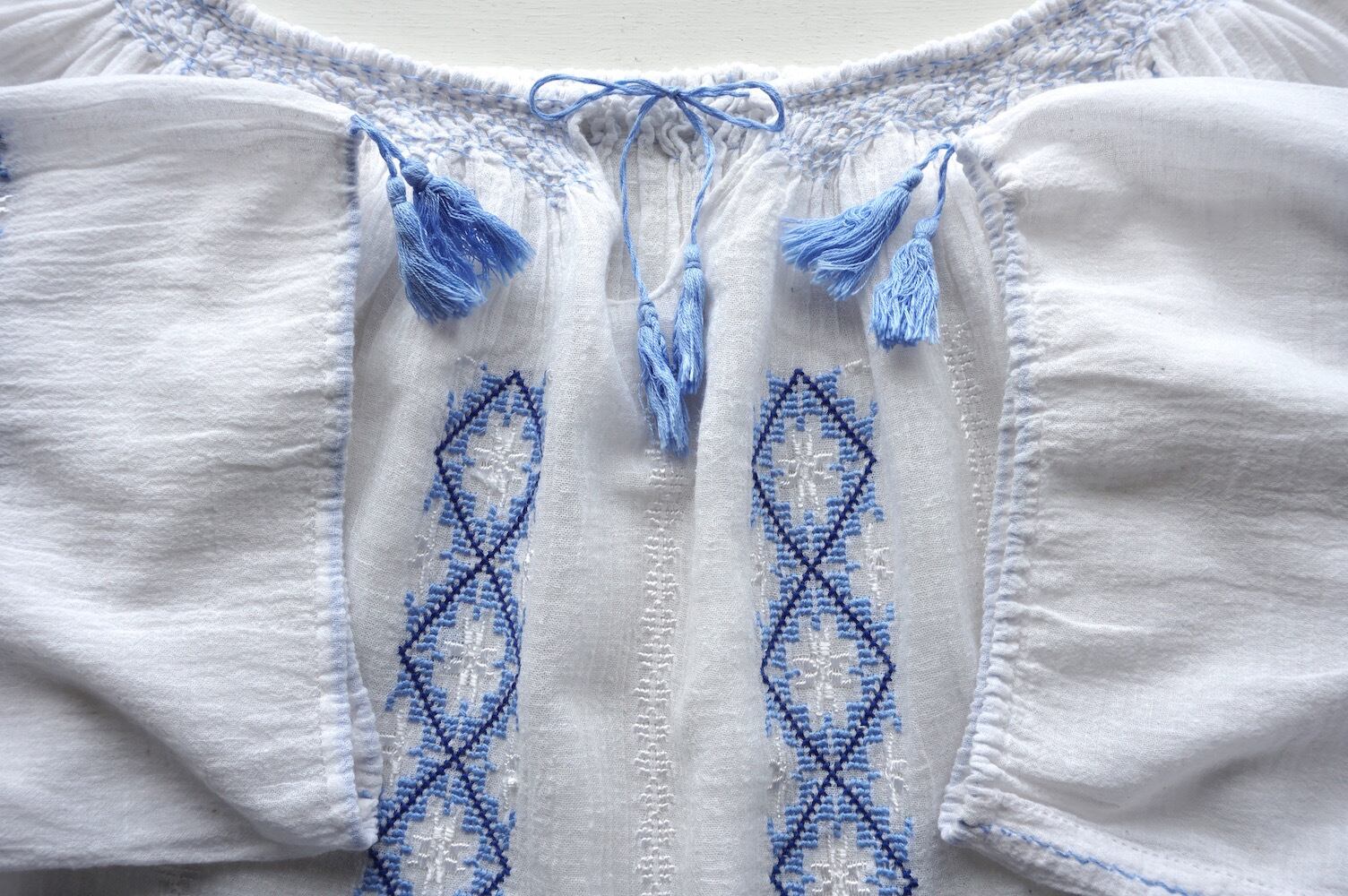 1970’s〜 エンブロイダリー コットンガーゼチュニック ホワイト×ブルー系 実寸(women's M〜L程度) ヴィンテージ
