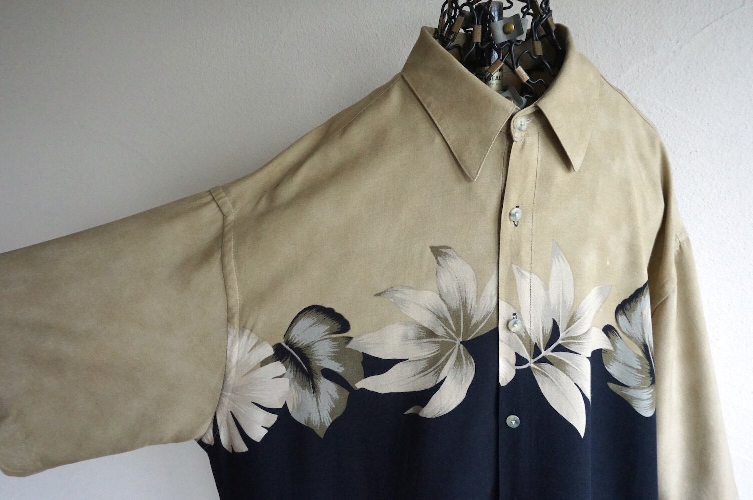 2000’s〜 [VAN HEUSEN] ボタニカルプリント バイカラー S/S ボックスレーヨンシャツ 実寸(L程度) リゾート ハワイアン アロハ