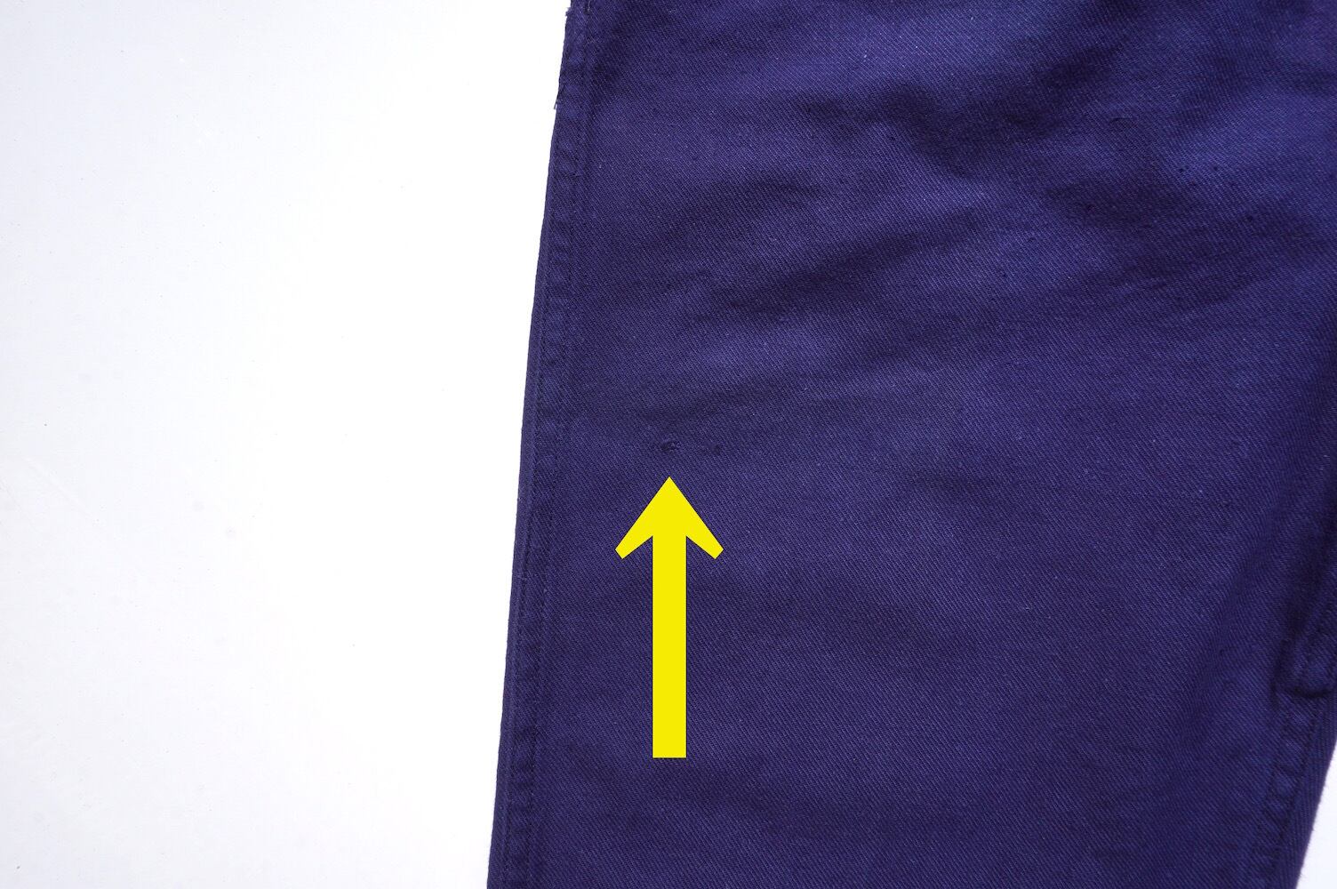 色濃いインクブルーの、フレンチワークパンツ。