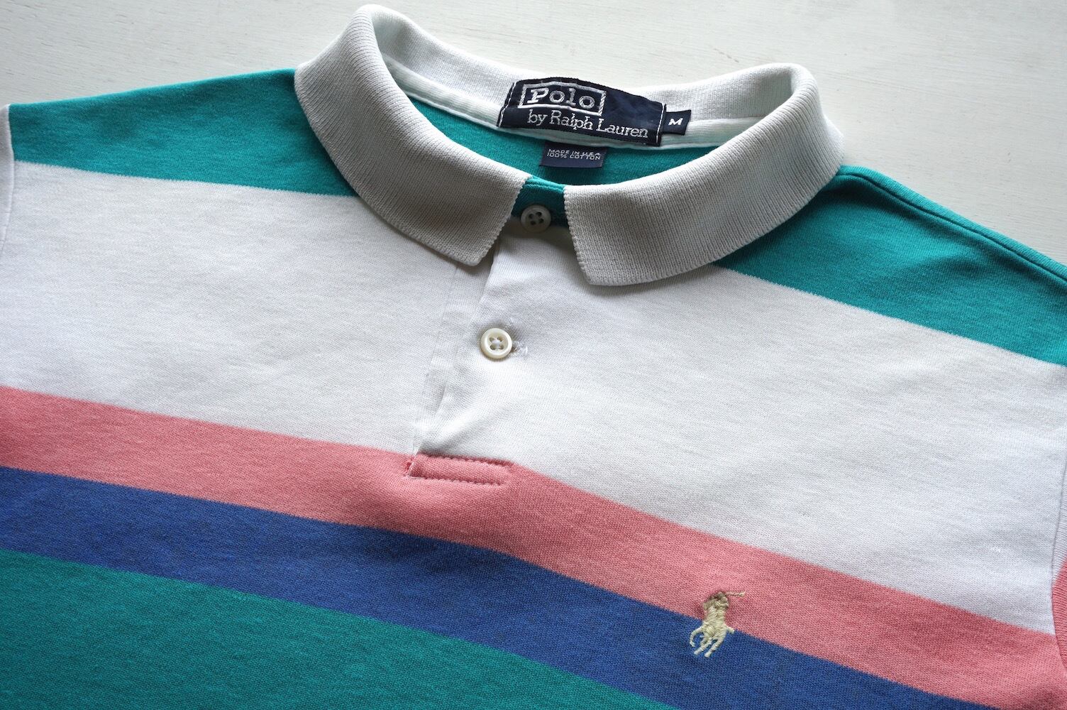 1990’s USA製 [Ralph Lauren] マルチパステルボーダー 100%コットン S/S ポロシャツ 表記(M) ラルフローレン ヴィンテージ