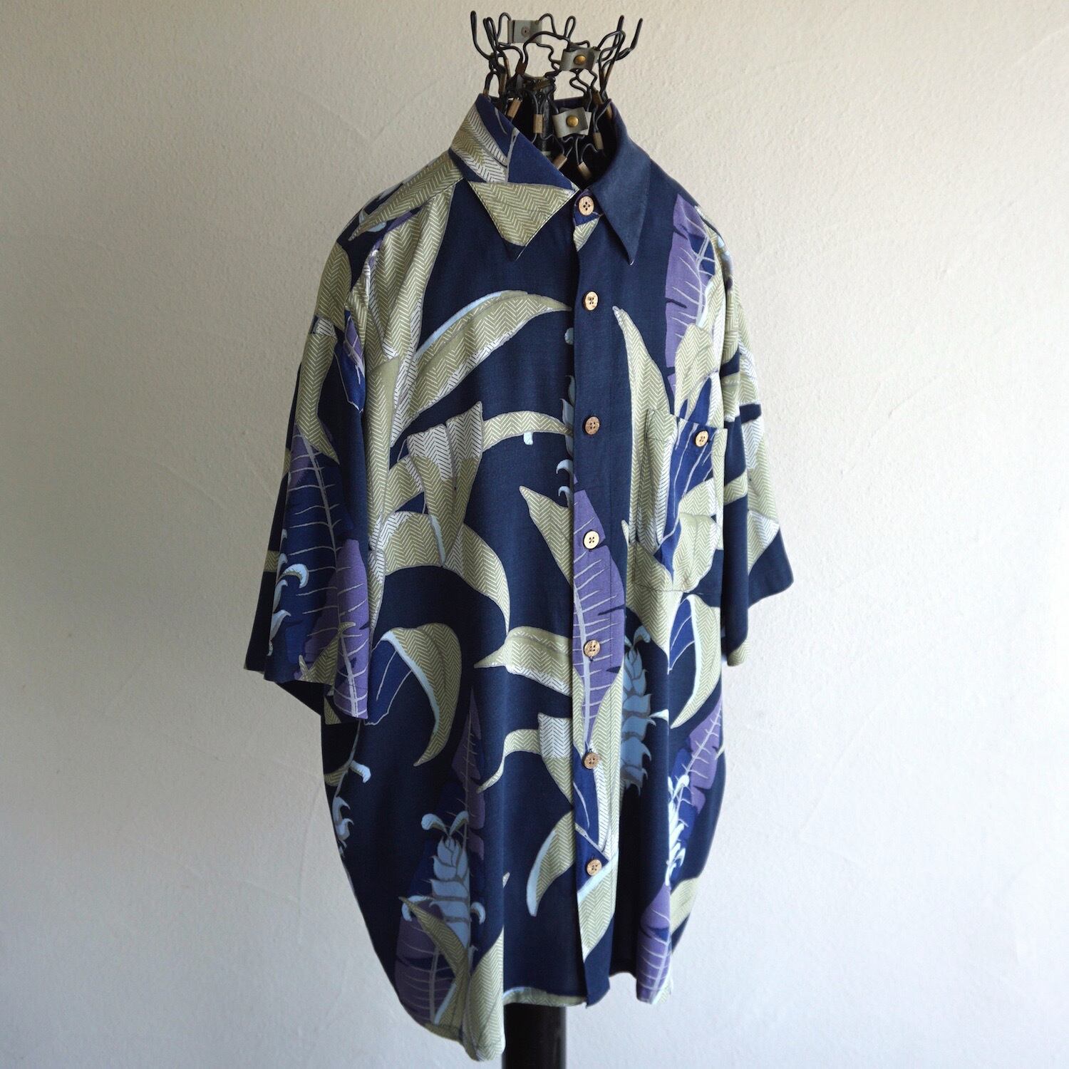 1990’s [puritan] ボタニカル柄 S/S レーヨンシャツ ネイビー 表記(M) リゾート アロハ ハワイアン