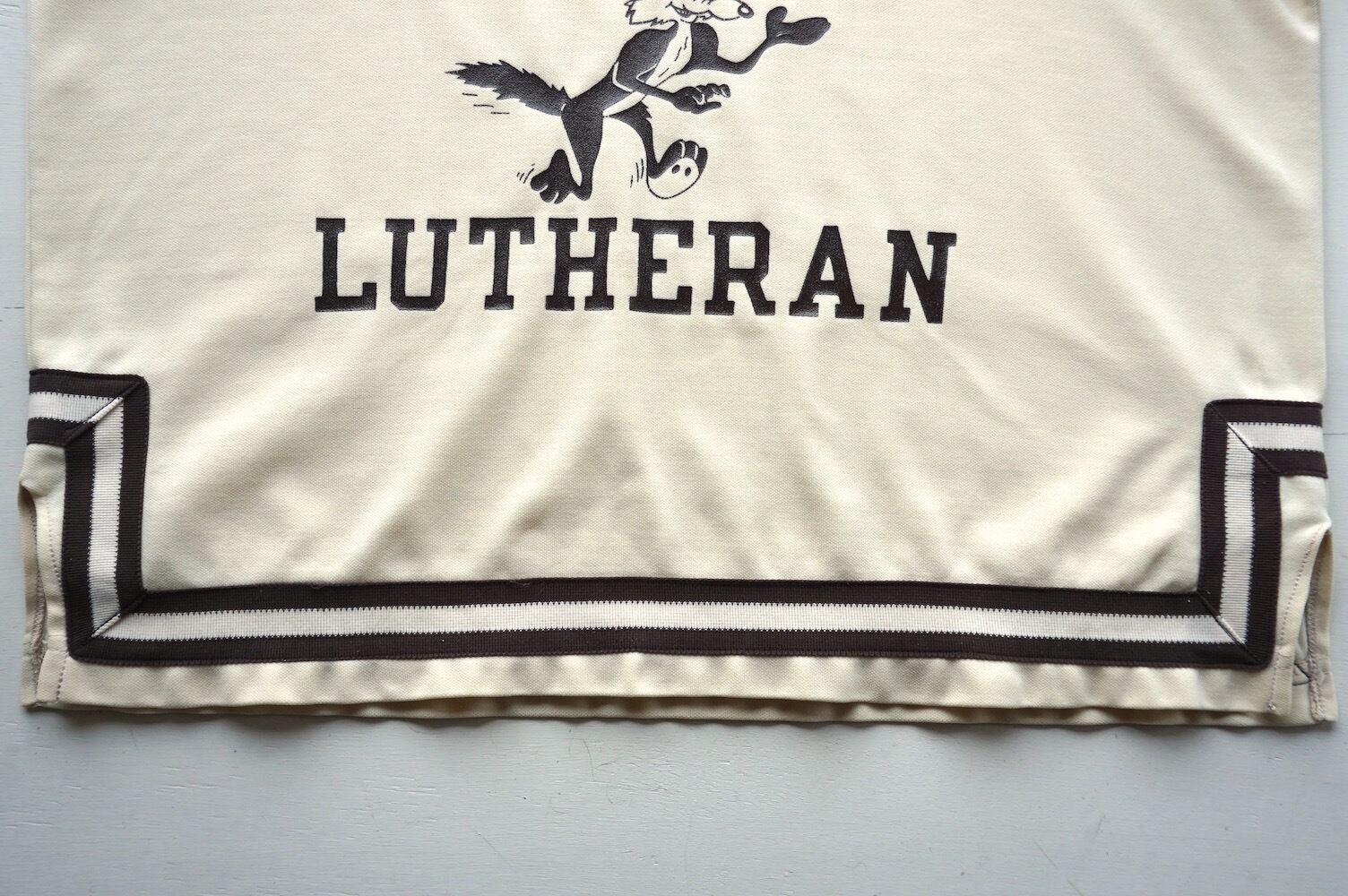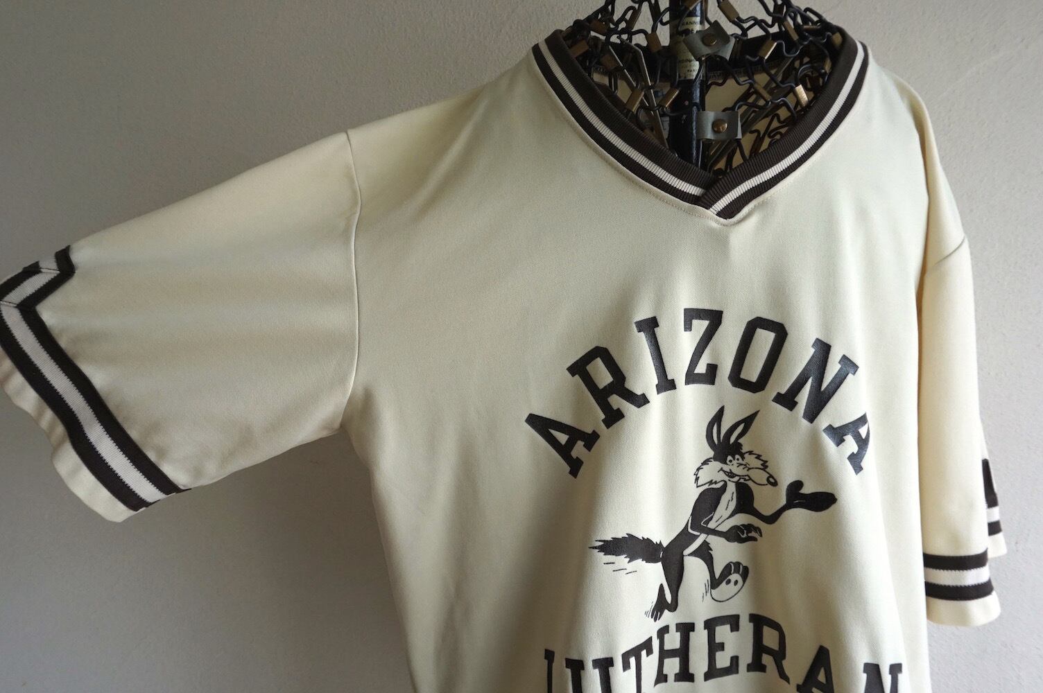 1980’s USA製 [Champion] "ALA COYOTES" ワイリー・コヨーテ 3段プリント アスレチックTシャツ ベージュ系 表記(M) Arizona Lutheran チャンピオン ヴィンテージ レア