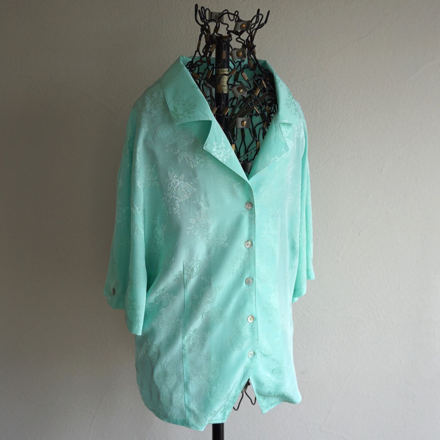 綺麗なミントグリーンのフローラル柄。