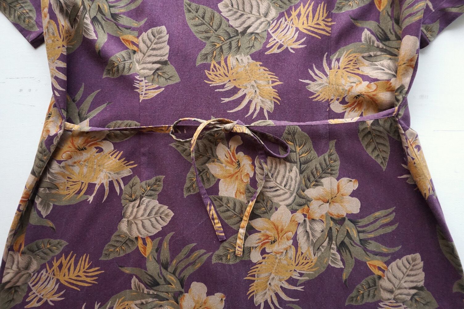 1990’s [SAG HARBOR] 100%シルク ボタニカル柄 S/S ミディドレス ワイン 実寸(women's L程度) ワンピース ヴィンテージ