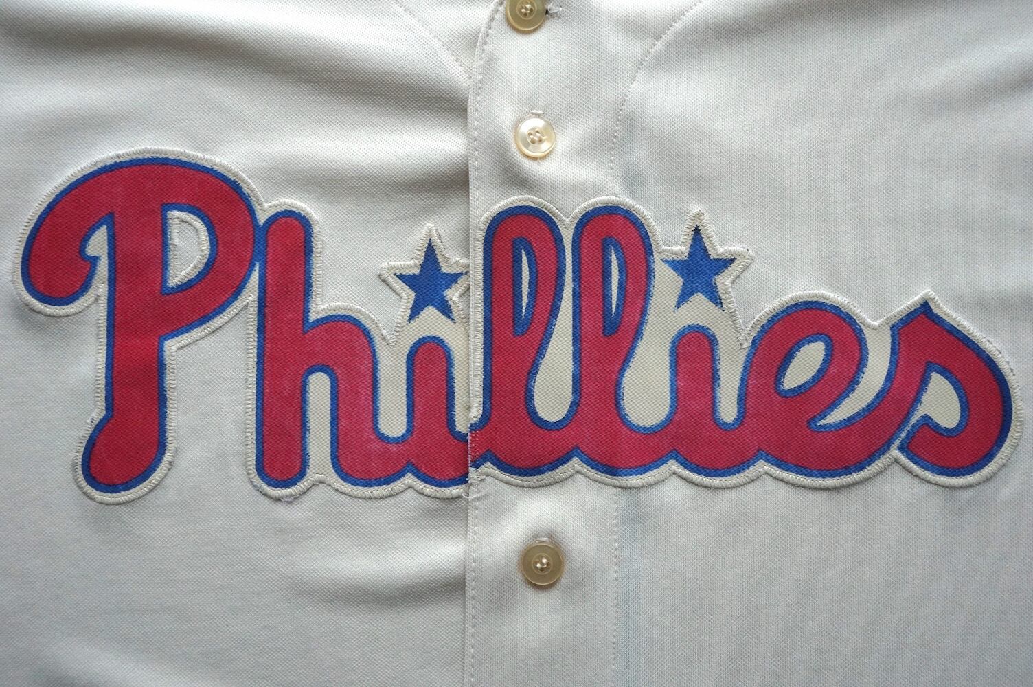 2000’s [Majestic] MLB "PHILADELPHIA PHILLIES" ベースボールシャツ アイボリー 実寸(M〜L程度) フィラデルフィア・フィリーズ マジェスティック