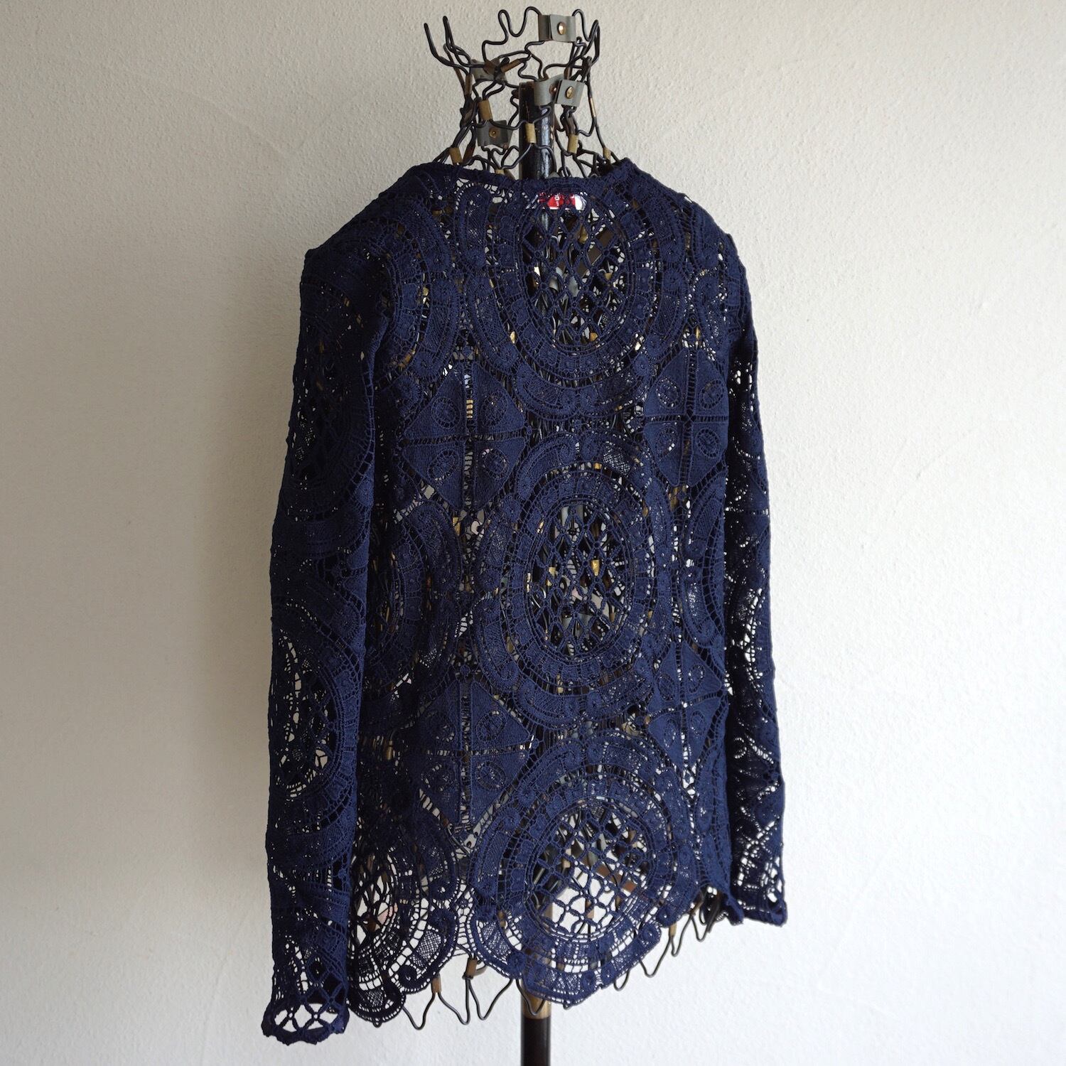 2000’s〜 [Living Doll] L/S クロシェレースカットソー ネイビー 実寸(women's M程度) シースルー