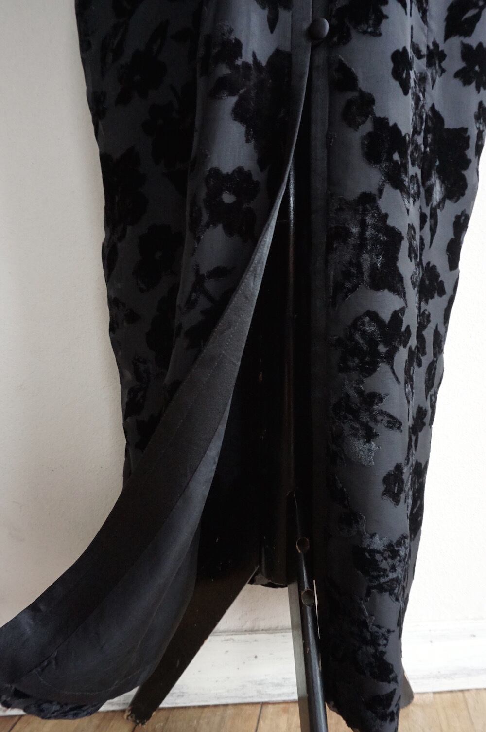 1990’s [JONES NEW YORK DRESS] フローラル柄バーンアウト チャイナドレス調 S/S ロングドレス ブラック 実寸(women's L程度) シースルー ワンピース ヴィンテージ