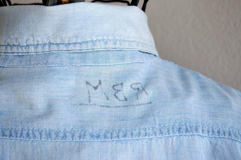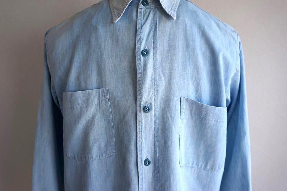 1960’s シャンブレーシャツ ポケットずれ フェードブルー 実寸(M位)