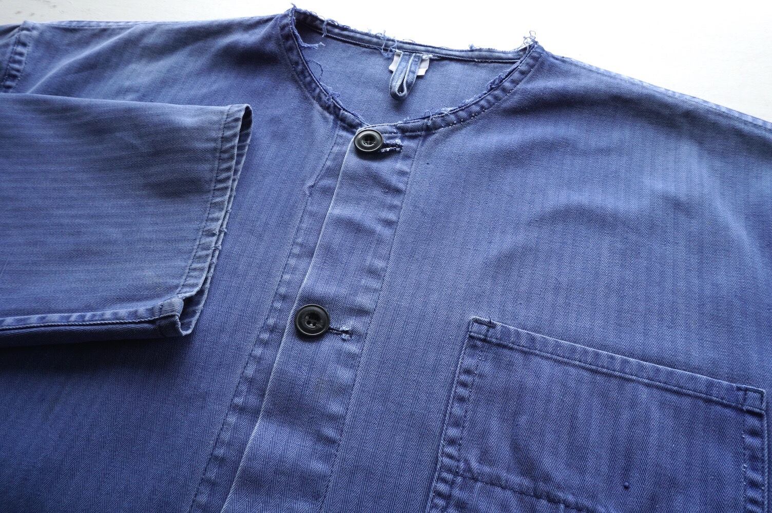 1970’s〜 ユーロワークカバーオール カラーレス&ショート丈カットオフ ヘリンボーンコットン ブルー HBT ヨーロッパ ヴィンテージ