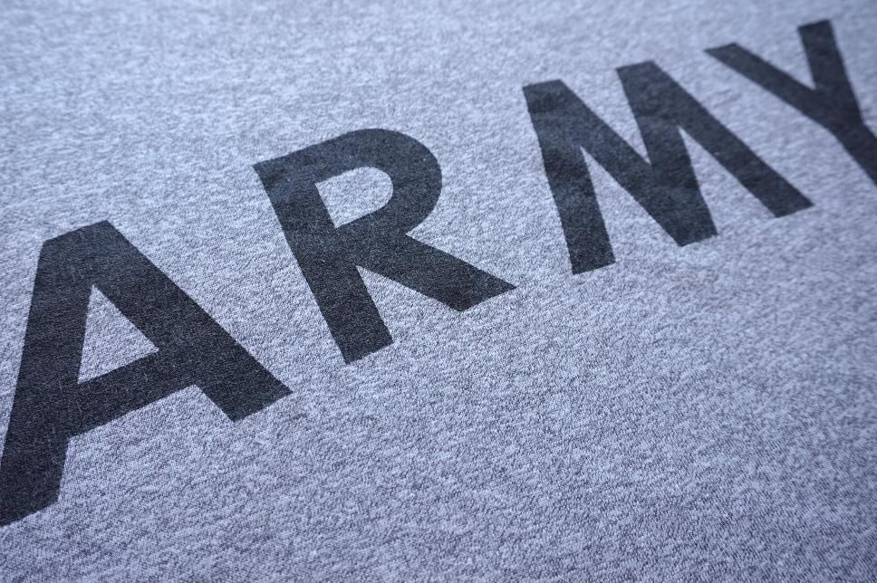 杢グレーのボディに、ARMYのプリント。