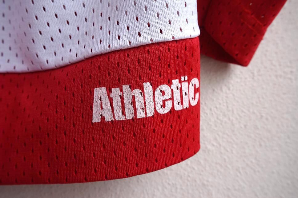 1980’s [ST.JOHN BAPTIST] メッシュ ホッケーゲームジャージ レッド×ホワイト 実寸(L位)