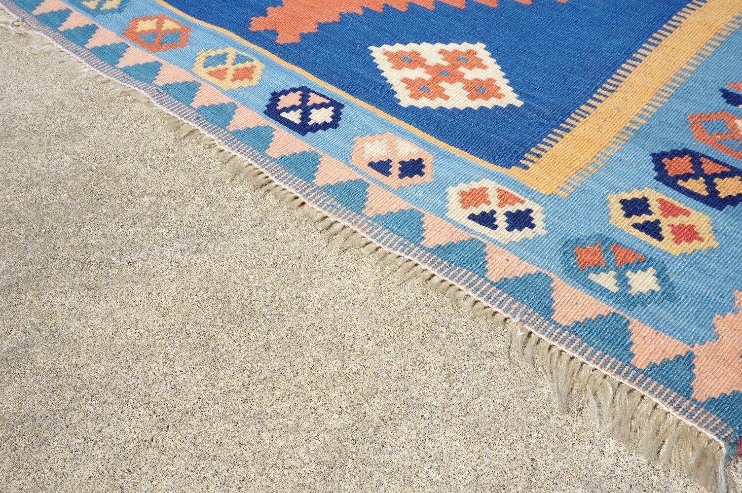 トルコのナザールボンジュウを思わせる様なブルーの色味が綺麗な、ハンドウーブン(手織り)キリム。