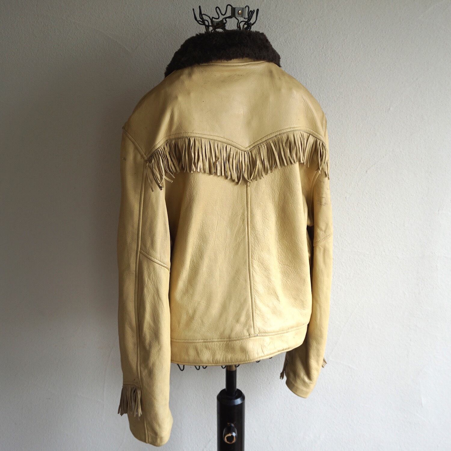 1950's [W.B.PLACE&Co.] 襟ボア&フリンジ ディアスキン レザージャケット TALON クリーム 表記(46) ヴィンテージ