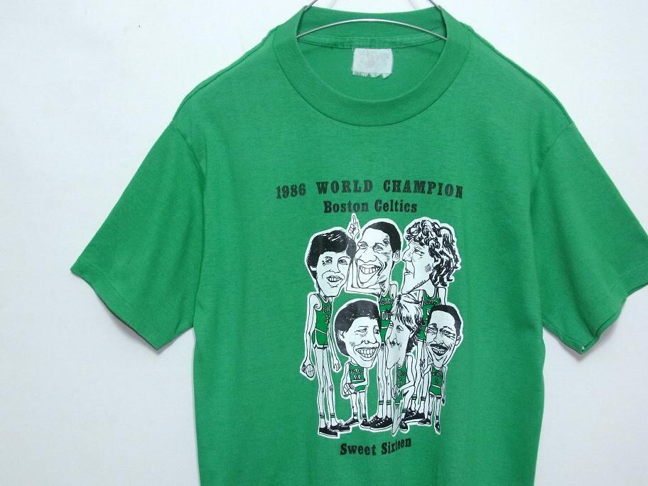 1980’s NBA BOSTON CELTICS ’86ワールドチャンピオンTシャツ 緑 実寸(S~M) セルティックス