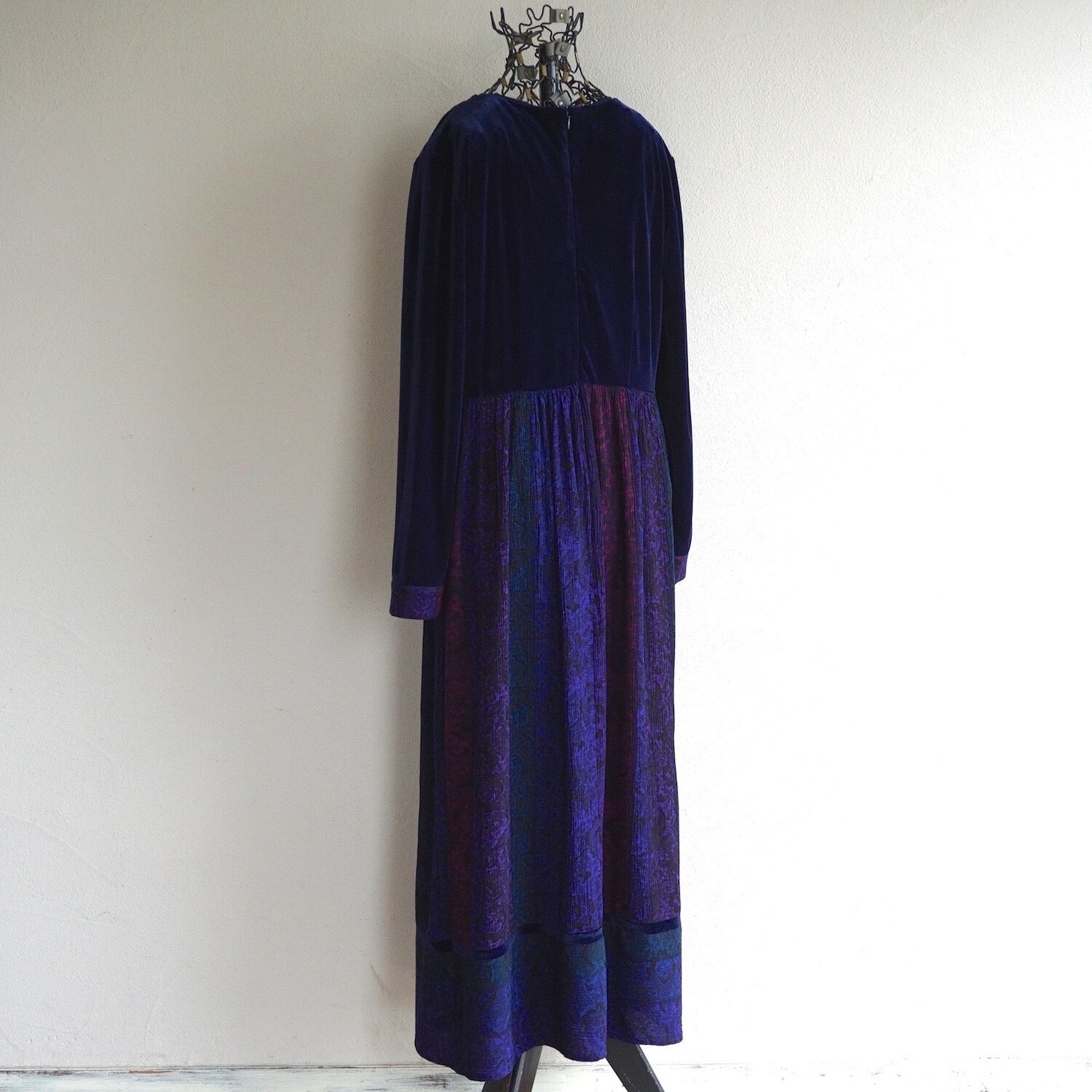 1990's [CAROLE LITTLE] ベロア×レーヨン切り替え アンサンブルデザイン ロングドレス ネイビー×パープル 実寸(women's M〜L程度) ワンピース ヴィンテージ | MAGNOLIA WEBSTORE