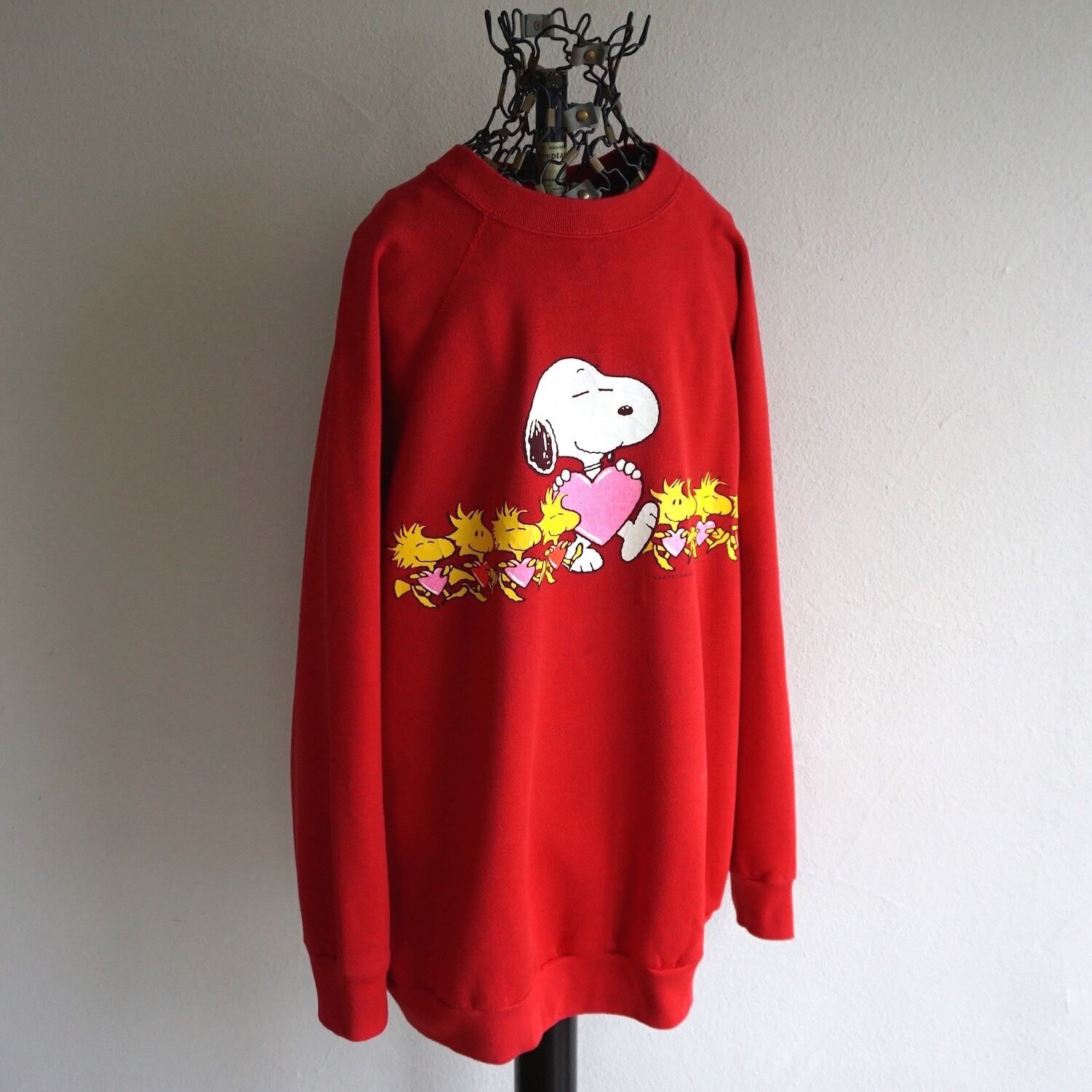 1990's USA製 [SNOOPY & Co.] スヌーピー&ウッドストック ラグランスリーブスウェット レッド 表記(XL) ヴィンテージ