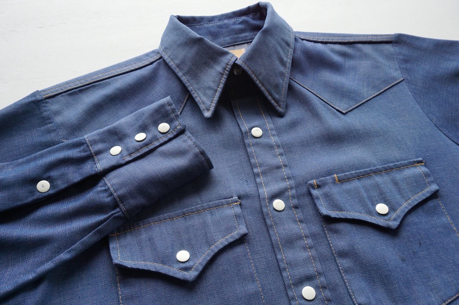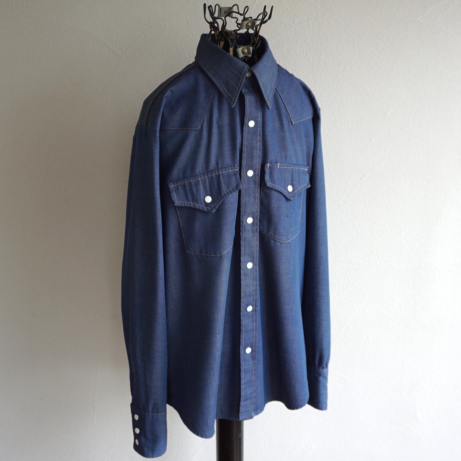 1970's [Sears] バットダイ デニムウエスタンシャツ ネイビー 実寸(M程度) DOT SNAPPERS ヴィンテージ
